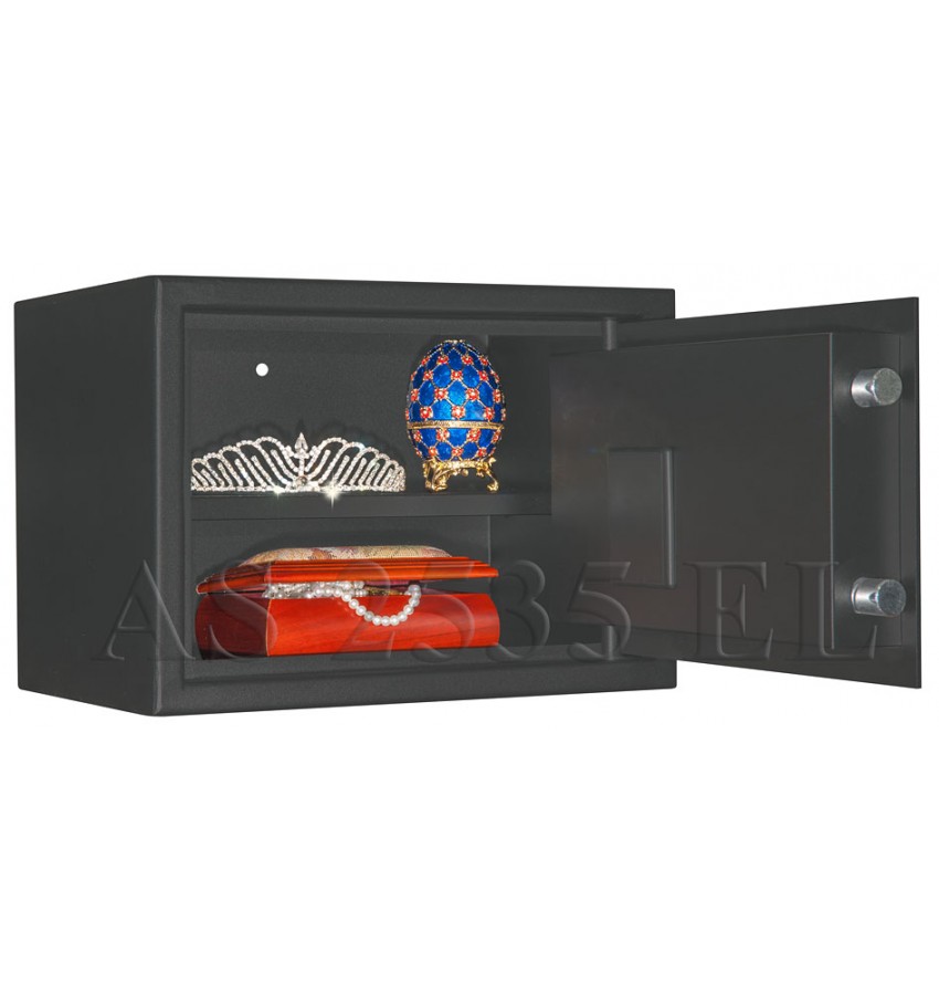 Имеются различные цвета. Используется в качестве мебельного, настольного, пистолетного сейфа и т.п. Удовлетворяет требованиям МВД. Сейф имеет гигиенически безопасное, износо- и коррозионно-устойчивое полимерно-порошковое покрытие. Замок Сейф оборудован высокосекретным надёжным электронным кодовым замком. Этот замок Вы можете по Вашему выбору эксплуатировать в режиме одного пользовательского кода, либо в режиме двух кодов (мастер-код и рабочий код). Оба кода устанавливает сам владелец сейфа. Длину кодовой комбинации (от трёх до восьми цифр) выбирает сам владелец сейфа. Подробная и понятная инструкция прилагается. Питание замка от стандартных батареек. Долгий срок службы батареек. Простая и удобная замена разряженных батареек. Сейф имеет систему аварийного открывания master-lock, которая позволит владельцу сейфа открыть и перепрограммировать электронный замок, если забыты установленные коды и т.п. Индивидуальные мастер-ключи входят в комплект сейфа. Электронный замок сейфа имеет светодиодную и звуковую индикацию – для ещё более удобной эксплуатации и программирования сейфа. Защита Усиленный корпус. Дверь сейфа усиленная коробчатая. Передний лист двери - сталь 3 мм. Петли - внутренние. Внутреннее устройство Внутри сейфа съёмная полка. Дно сейфа отделано ковролином. Установка Предусмотрена возможность установки сейфа в мебель, крепления сейфа к стене, к полу, мебельной полке и т.п. Модификации Дополнительно может комплектоваться пистолетными ложементами (пластиковыми либо деревянными) а также колодками под патроны. Сейфы этой модели стандартно поставляются с различными вариантами полимерно-порошковых покрытий: эффект молотковой эмали серый (как на центральном фото), медный антик, светло-серый шагрень, а также черный дымчатый. Уточняйте при заказе - в каких цветах имеются сейфы в наличии. Ассортимент сейфов по цвету может меняться
