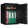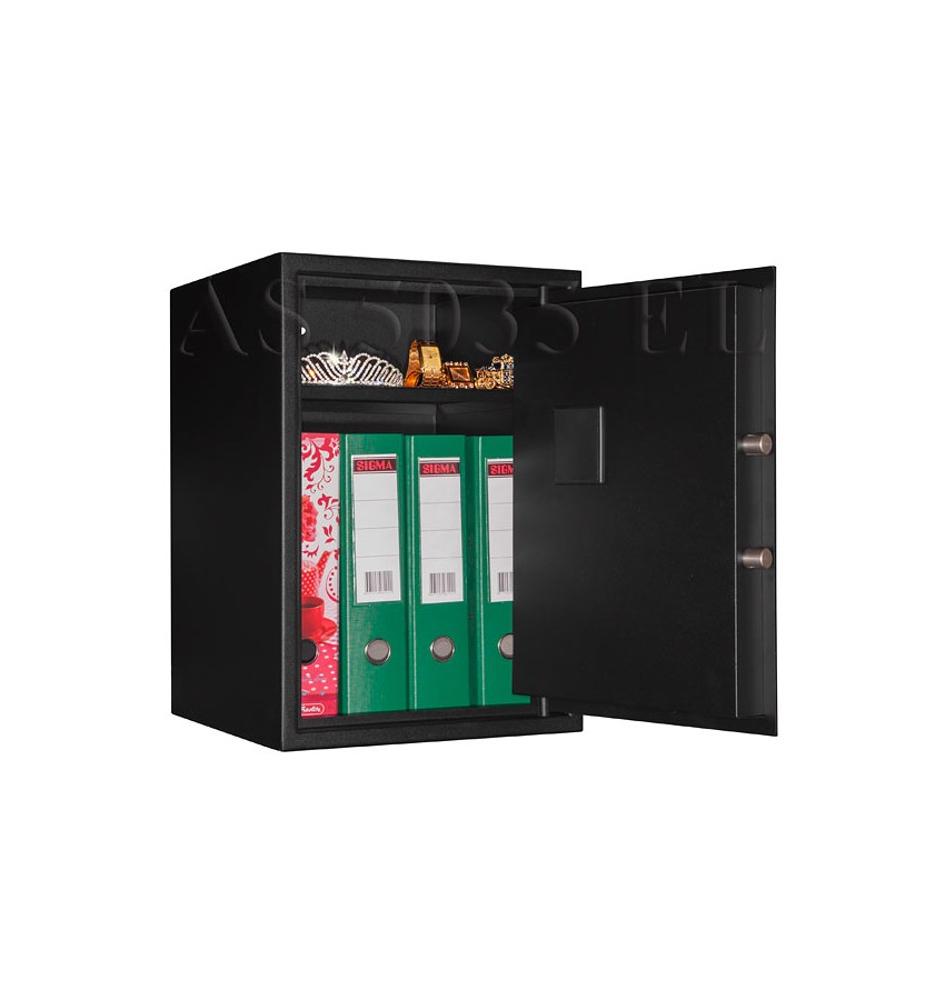 Габариты сейфа позволяют хранить в нём папки Корона и т.п. Имеются различные цвета. Используется в качестве мебельного, настольного, пистолетного сейфа и т.п. Удовлетворяет требованиям МВД. Сейф имеет гигиенически безопасное, износо- и коррозионно-устойчивое полимерно-порошковое покрытие. Замок Сейф оборудован высокосекретным надёжным электронным кодовым замком. Этот замок Вы можете по Вашему выбору эксплуатировать в режиме одного пользовательского кода, либо в режиме двух кодов (мастер-код и рабочий код). Оба кода устанавливает сам владелец сейфа. Длину кодовой комбинации (от трёх до восьми цифр) выбирает сам владелец сейфа. Подробная и понятная инструкция прилагается. Питание замка от стандартных батареек. Долгий срок службы батареек. Простая и удобная замена разряженных батареек. Сейф имеет систему аварийного открывания master-lock, которая позволит владельцу сейфа открыть и перепрограммировать электронный замок, если забыты установленные коды и т.п. Индивидуальные мастер-ключи входят в комплект сейфа. Электронный замок сейфа имеет светодиодную и звуковую индикацию – для ещё более удобной эксплуатации и программирования сейфа. Защита Усиленный корпус. Дверь сейфа усиленная коробчатая. Передний лист двери - сталь 3 мм. Петли - внутренние. Внутреннее устройство Внутри сейфа съёмная полка с регулируемой высотой установки. Дно сейфа отделано ковролином. В сейф помещаются папки КОРОНА, ноутбук и т.п. Установка Предусмотрена возможность установки сейфа в мебель, крепления сейфа к стене, к полу, мебельной полке и т.п. Модификации Дополнительно может комплектоваться пистолетными ложементами (пластиковыми либо деревянными) а также колодками под патроны. Сейфы этой модели стандартно поставляются с различными вариантами полимерно-порошковых покрытий: эффект молотковой эмали серый (как на центральном фото), медный антик, светло-серый шагрень, а также черный дымчатый. Уточняйте при заказе - в каких цветах имеются сейфы в наличии. Ассортимент сейфов по цвету может меняться