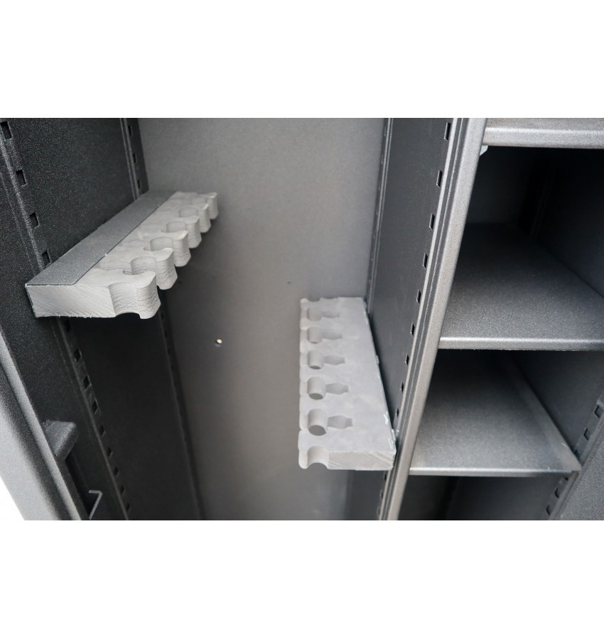 ОписаниеSAFEtronics разработала модели сейфов TSS, предназначенные для хранения оружия и документов. Оружейный сейф SAFEtronics серии TSS имеет подсветку внутреннего пространства. Толщина двери сейфа составляет 5мм. Корпус состоит из двух частей: внешний корпус изготавливается из металлического листа толщиной 3мм, внутренний - из металлического листа толщиной 2мм, между которыми находится несколько слоев наполнителя (SMREKOLIT), толщиной 20мм. Благодаря этому, данная серия сейфов соответствуют 1 классу защиты от взлома и обеспечивают начальную защиту от пожара. Отличительной особенностью всей линейки оружейных сейфов SAFEtronics от оружейных шкафов других производителей – полное соответствие технологии с технологией изготовления сейфов первого класса. Вследствие этого, оружейный сейф может не только контролировать содержимое сейфа от доступа посторонних лиц, но и защищать от профессионального взлома. Оружейные сейфы серии TSS оснащаются кодовыми механическими замками LA GARD (США), ключевыми MAUER (Германия), электронными замками SAFEtronics (Словакия). Область замка сейфов защищена двумя пластинами из марганцовистой стали, защищающими замок сейфа от высверливания. Сейфы серии TSS сертифицированы по европейскому стандарту EuroVDS (Германия), чешскому CSN-9160010 и российскому ГОСТ Р-50862-96 - 1 классу защиты от взлома. ДоставкаСтоимость доставки по Москве в пределах МКАД: при заказе от 20 000 рублей бесплатно, менее 20000 руб - 1200 рублей Доставка возможна на 06.12.2025 или на 07.12.2025 Доставка по РФ и СНГ: по тарифам транспортных компаний Стоимость разгрузки: 3540 руб СамовывозСамовывоз: со склада, после после подтверждения заказа ОплатаОплата: наличными при получении товара, безналичный расчет ( 100% предоплата) Сейф Safetronics TSS-160 MLG/k10 |