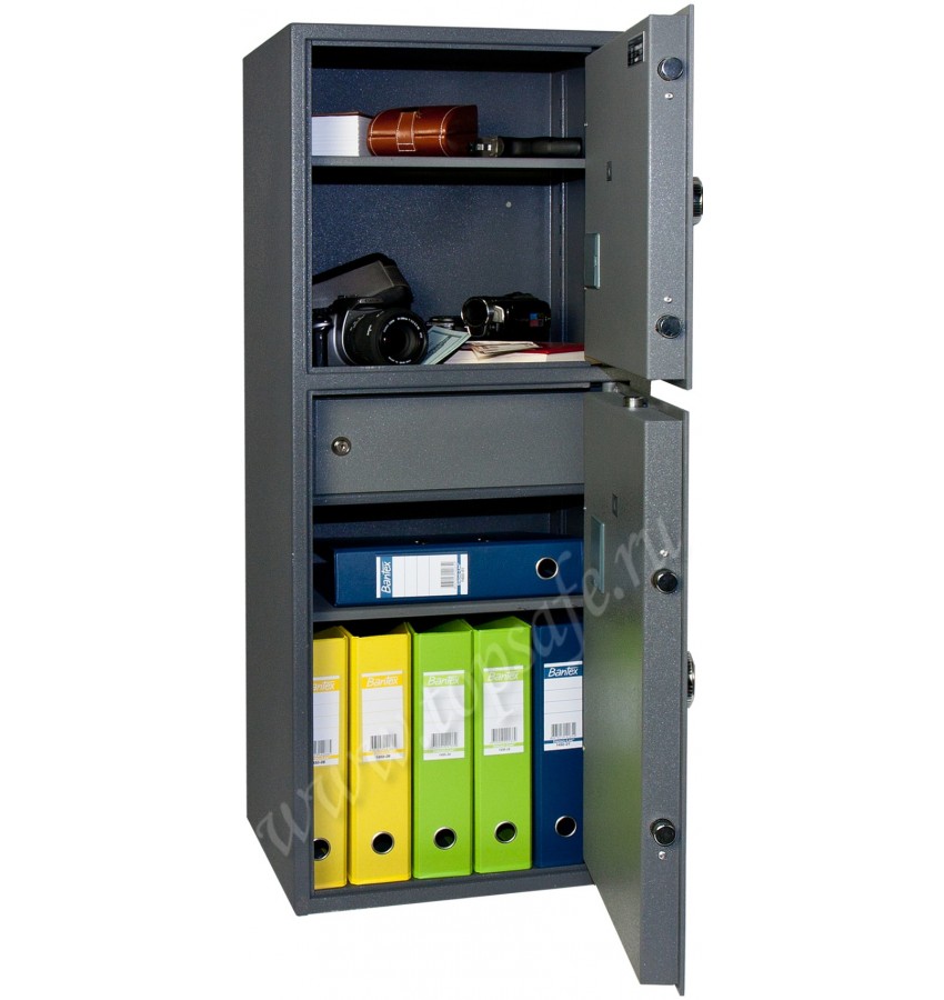 Полки регулируются по высоте. Глубина сейфа указана без учета ручки (22мм).