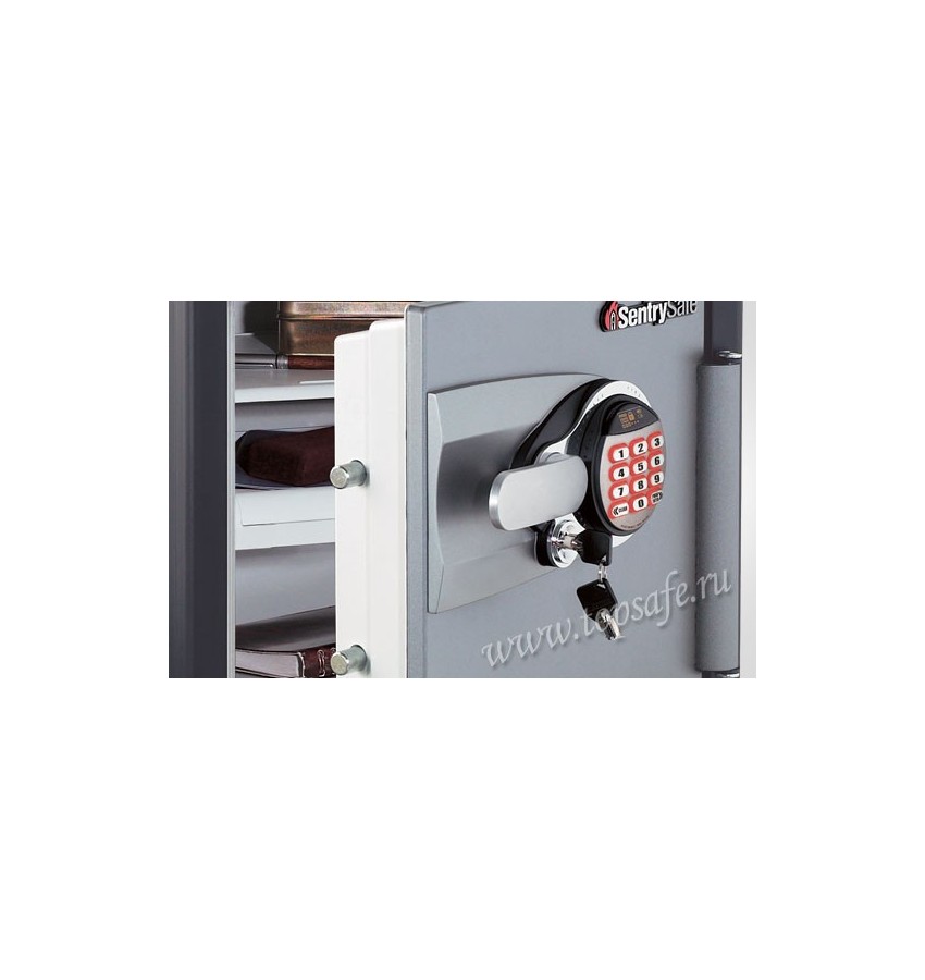 Описание2 часа огнестойкости по американскому стандарту UL, электронный замок на 5 программируемых кодов с дополнительным механическим замком, дверь с «карманом», внутри две полки. 2 часа защиты от огня мультимедийной продукции при температуре 1000 градусов цельсия. Может крепиться к полу, крепежные элементы в комплекте.