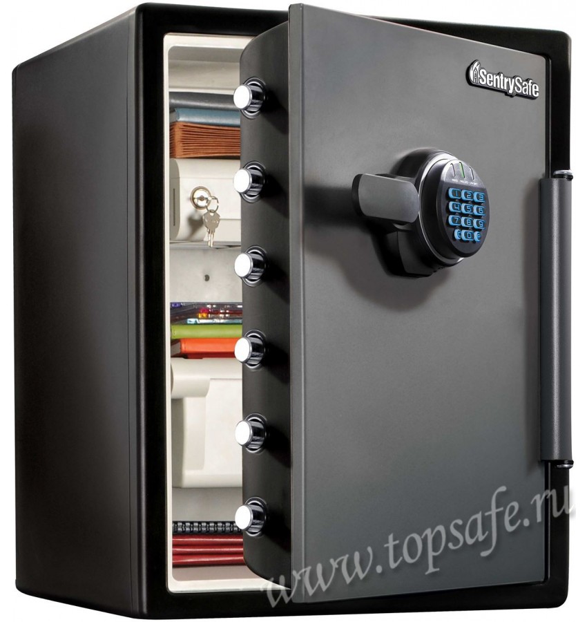 ОписаниеДля обеспечения надежной защиты огневодостойкий сейф SentrySafe SFW205FYC имеет стальную внешнюю оболочку. Сейф прошел сложнейшие тесты на защиту, как от огня, так и от воды. С уверенностью можно утверждать, он будет держать свое содержимое в полной целости и сохранности. Программируемый цифровой замок имеет подсветку, которая поможет набрать верный код в темное время суток. Для дополнительной защиты от взлома SentrySafe SFW205FYC оснастили устойчивыми петлями и широкими ригелями. В этом большом сейфе мы можете хранить и мелкие ценные предметы, для которых в сейфе присутствует специальный лоток и дополнительный держатель в дверце.