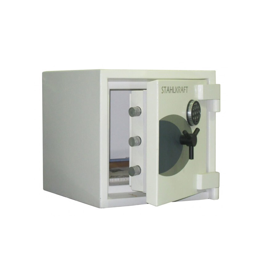 Клавиатура замка питается от батарейки питания Крона 9 V, когда батареека садится, то диод на клавиатуре моргает красным светом и пищит. Если Вы не успели заменить батарею, то на клавиатуре есть специальный разъем для резервного питания, к нему надо поднести крону и набрать свой код, открыть сейф и заменить батарею на внутренней стороне двери. При замене элемента питания, коды не сбрасываются, они остаются в памяти замка. Наполнение огнестойким композитным материалом, гарантирует надежность, в случае защиты при пожаре и через 25 лет Сейф сертифицирован в лучших сертификационных компаниях Европы-VDS,ECB-s,SP. Прошедший испытания и сертифицированный по VdS- Германия (EN1143-1) - Класс 1 Прошедший испытания и сертифицированный по ГОСТ 50862-2005, Класс 2 Прошедший испытания и сертифицированный по ГОСТ 50862-2005, 60Б. Доп.опции: