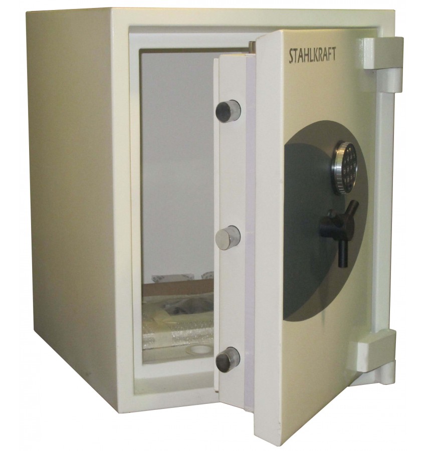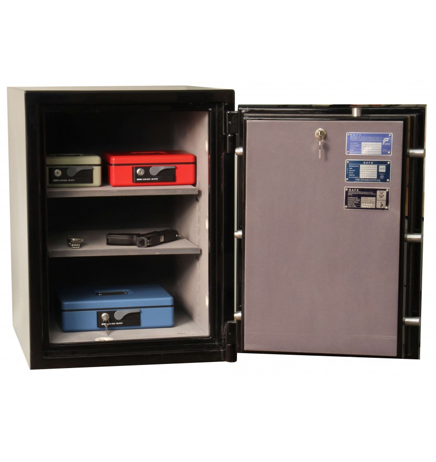Клавиатура замка питается от батарейки питания Крона 9 V, когда батареека садится, то диод на клавиатуре моргает красным светом и пищит. Если Вы не успели заменить батарею, то на клавиатуре есть специальный разъем для резервного питания, к нему надо поднести крону и набрать свой код, открыть сейф и заменить батарею на внутренней стороне двери. При замене элемента питания, коды не сбрасываются, они остаются в памяти замка. Наполнение огнестойким композитным материалом, гарантирует надежность, в случае защиты при пожаре и через 25 лет Сейф сертифицирован в лучших сертификационных компаниях Европы-VDS,ECB-s,SP. Прошедший испытания и сертифицированный по VdS- Германия (EN1143-1) - Класс 1 Прошедший испытания и сертифицированный по ГОСТ 50862-2005, Класс 2 Прошедший испытания и сертифицированный по ГОСТ 50862-2005, 60Б. Доп.опции: