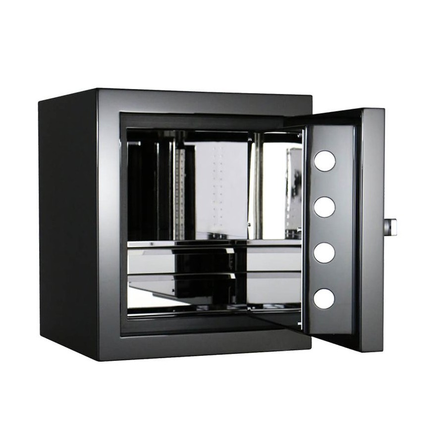 ОписаниеSTOCKINGER HOTEL CUBE — это, пожалуй, самый экстравагантный отельный сейф в мире: благодаря сочетанию нескольких слоев черного глянцевого лака снаружи и полностью покрытой хромом ручки из массивной латуни эта модель не подвержена влиянию моды и всегда будет выглядеть элегантно. Внутри в одном или двух обитых материалом Stockinger Suede выдвижных ящиках достаточно места для документов и личных ценностей. Электронная замковая система Primor 3200 с аварийным ключом; четырехзначный код, индивидуально настраиваемый для каждого гостя; 1 мастер-код; питание от моноблочной батареи 9 В