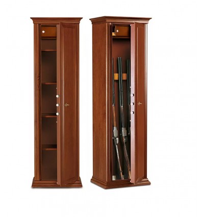 – сейф-трансформер: может использоваться как оружейный сейф или как сейф для хранения документов и ценностей; – в комплекте к этому универсальному сейфу идут 4 деревянных полки, а также деревянные ложементы для хранения 7 единиц длинноствольного оружия; – полки могут перемещаться по высоте с шагом 15 см; – сейф отделан снаружи массивом натурального дерева (оттенок – Орех классический); – безупречное качество отделки выделяет данные модели, полностью произведённые в Италии, среди других сейфов в дереве; – толщина металлической лицевой защитной панели – 5 мм; – толщина металла боковых стенок – 3 мм; – ключевой замок с двойной бородкой (в комплекте 2 ключа); – 3-сторонняя ригельная система запирания (три горизонтальных и два вертикальных вращающихся ригеля диаметром 22 мм); – механизм замка, а также все ригели защищены от высверливания пластинами из сверхпрочного материала; – трейзер (дополнительный ящик с отдельным ключевым замком) может использоваться для удобного хранения денег или же патронов (в случае использования сейфа в качестве оружейного); – дверь сейфа открывается на 90 градусов; – возможно анкерное крепление к полу и стене – в задней и нижней стенке имеются 8 штатных отверстий (4+4), анкерные болты идут в комплекте; – пол сейфа защищён мягким ковриком; – сейф соответствует требованиям Министерства Внутренних Дел РФ к хранению огнестрельного оружия; Производство: TECHNOMAX (Италия).