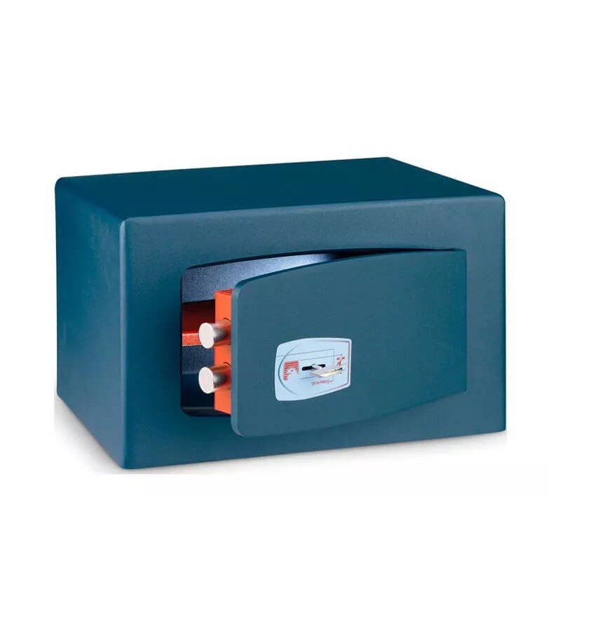 Сейф Technomax GMK/3 имеет мелкозернистое покрытие порошковой краской цвета маренго (темный сине-серый), устойчивое к царапинам и коррозии. Внутренняя поверхность двери и полка окрашены в красный цвет.