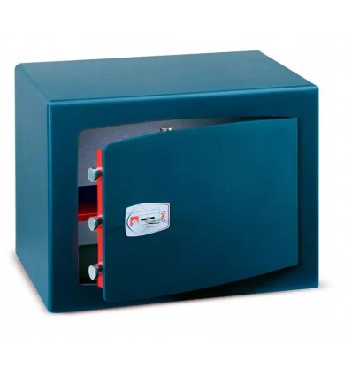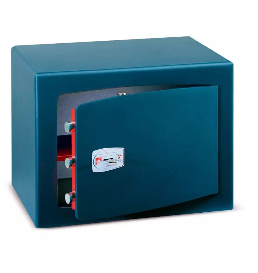 Сейф Technomax GMK/5 имеет мелкозернистое покрытие порошковой краской цвета маренго (темный сине-серый), устойчивое к царапинам и коррозии. Внутренняя поверхность двери и полка окрашены в красный цвет.