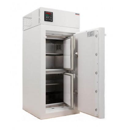 Сейф-термостат медицинский TS-3/50 имеет следующие потребительские свойства: • Выполняет Правила одновременного и раздельного хранения термолабильных и не требующих особых температурных условий лекарственных средств в условиях, определенных Фармакопеей РФ: * Рабочая камера выполнена из нержавеющей стали, оснащена осветителем и оборудована дверцей с замком. * Источник обеспечения тепловых режимов хранения – полупроводниковый термоэлектрический модуль. * Терморегулирование объема рабочей камеры достигается посредством пропорционального изменения интенсивности создаваемого воздушного потока. * Одновременная цифровая индикация величины уставки и значения достигнутой температуры с дискретностью 0,1°С. * Устанавливаемый температурный диапазон хранения от +3,0° до Т внешняя. * Точность поддержания температуры в рабочей камере не хуже 0,3°С. Дополнительные функции: 1. Включение освещения камеры и аварийной звуковой сигнализации при открывании ее дверцы. 2. Срабатывание аварийной звуковой сигнализации при отсутствии сети электропитания. 3. Выход двух пар «сухих» контактов при срабатывании аварийной сигнализации. 4. Выход в сеть RS-485 для наблюдения, управления, сбора и учета данных на ПК или Owen Cloud . . Опции под заказ: - ПО, сетевой шлюз или преобразователь RS-485 в интерфейс для необходимой среды передачи данных. Преимущества: - низкое потребление электроэнергии; - экологическая безопасность (отсутствие хладагента); - низкий уровень шума; - выход в сеть стандарта RS-485, для дистанционного управления и ведения архива в графическом и табличном виде и интегрирование в SCADA -систему; - раздельное и одновременное хранение лекарств в TS-3/50 - запатентованная многослойная защита стенки и двери сейфа с 3-х сторонней усиленной ригельной системой запирания; - защита замков и ригелей от высверливания и выбивания с системой блокировки ригельного механизма; - устройство для опечатывания; - Наличие анкерного крепления к полу. Анкерный болт в комплекте. - Сейфы – термостаты медицинские соответствуют ГОСТ Р 57266-2016 Дополнительная опция: Подставка под термостат Gold 67 Подставка под термостат Gold 99