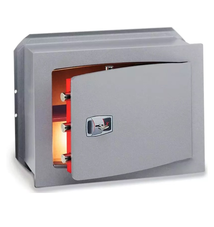 Стальные якорные выступы по всем четырём сторонам задней панели препятствуют вырыванию сейфа из стены.