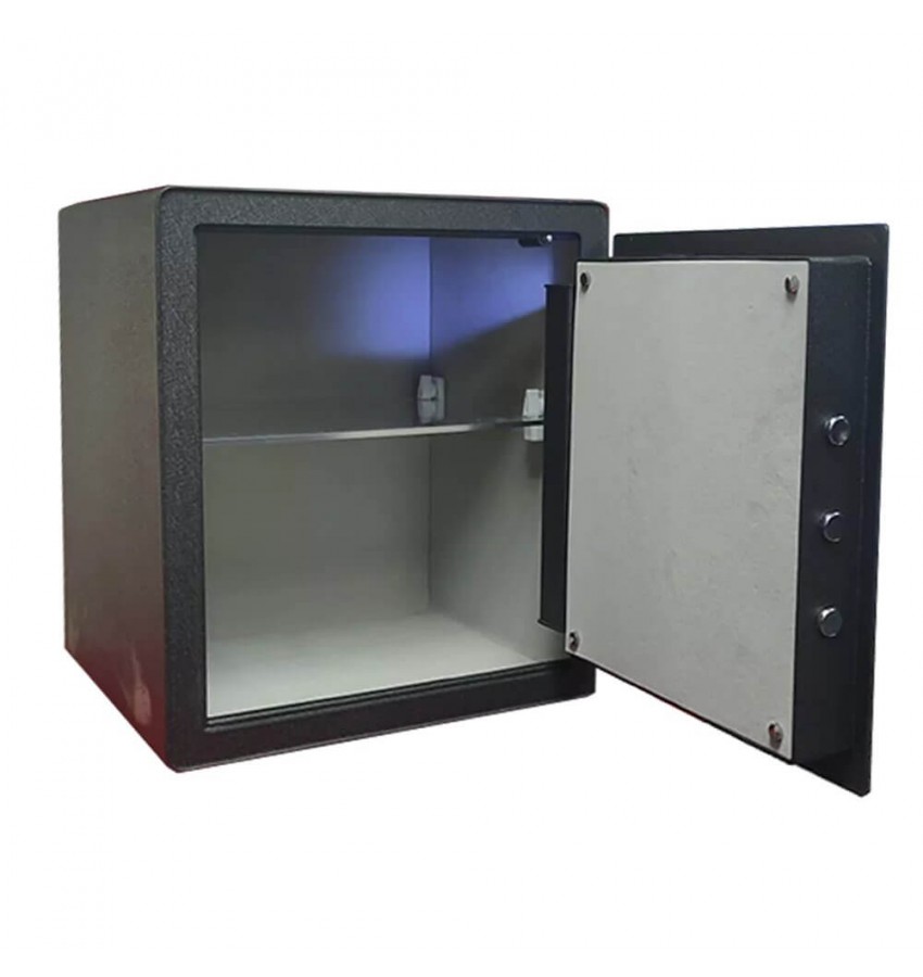 Модель оснащена трехмерными емкостными датчиками, которые позволяют быстро и точно идентифицировать пользователя. Для этого в самом центре дверцы расположена большая кнопка со встроенным сенсором отпечатка пальца. Все, что вам нужно, это коснуться выделенной области и замок сразу откроется. Проверка отпечатка происходит мгновенно и не заставит долго ждать. Сейф может хранить до 30 отпечатков разных людей, а значит им можете пользоваться не только вы, но и ряд доверенных лиц.