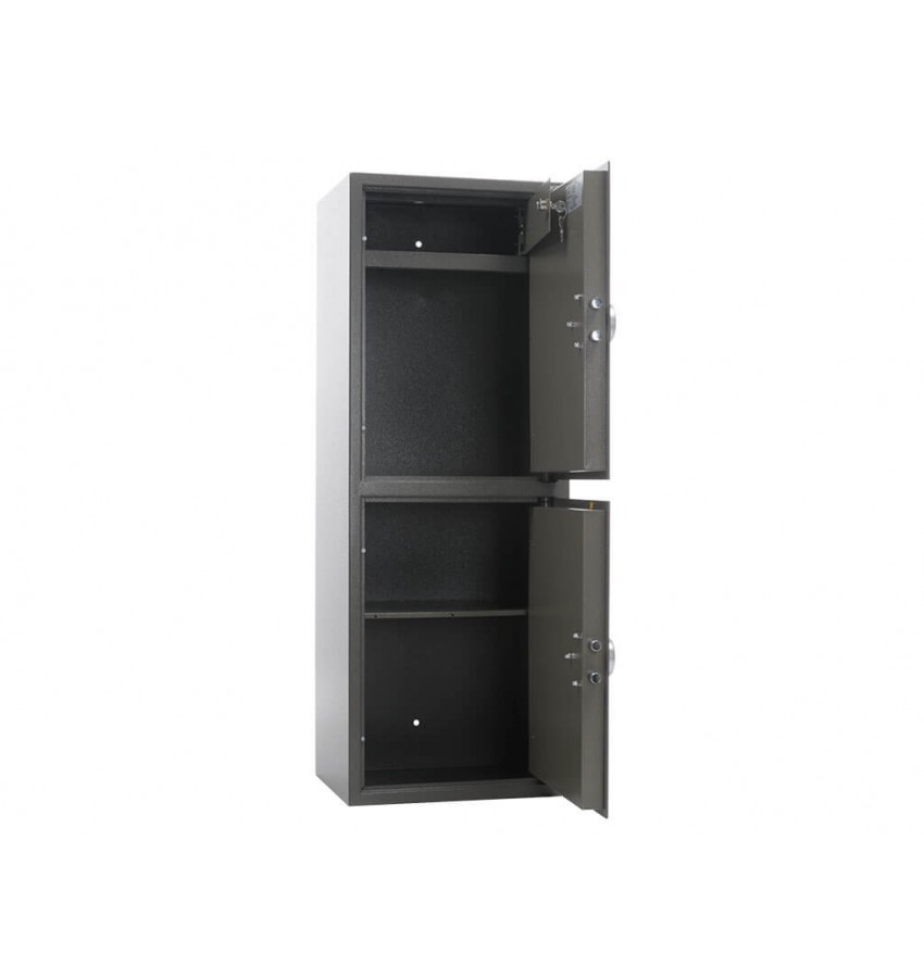 ОписаниеСейф Aiko TM-120/2T EL имеет две секции, позволяющие удобно разместить ценные вещи, документы и деньги. На каждой секции установлены электронные замки PLS-1 с возможностью аварийного открытия. Замок защищен от высверливания.