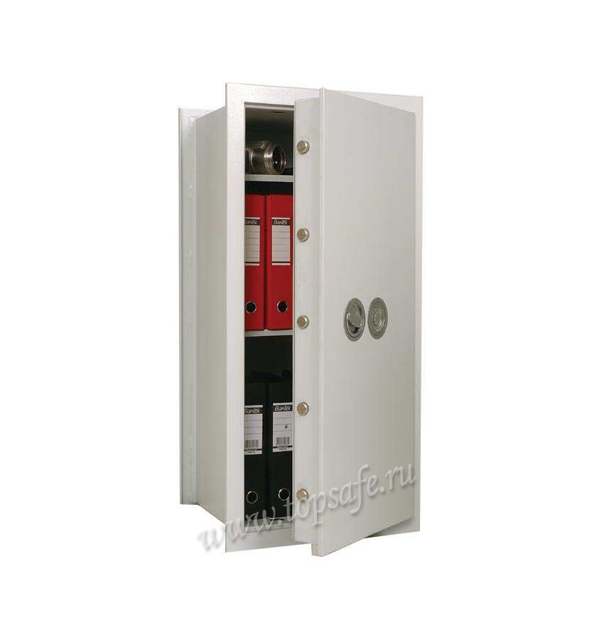 ОписаниеБлагодаря тому, что сейф находится в массиве стены, его можно тщательно закамуфлировать, кроме того, нахождение в массиве стены дает определенную защиту от огня.