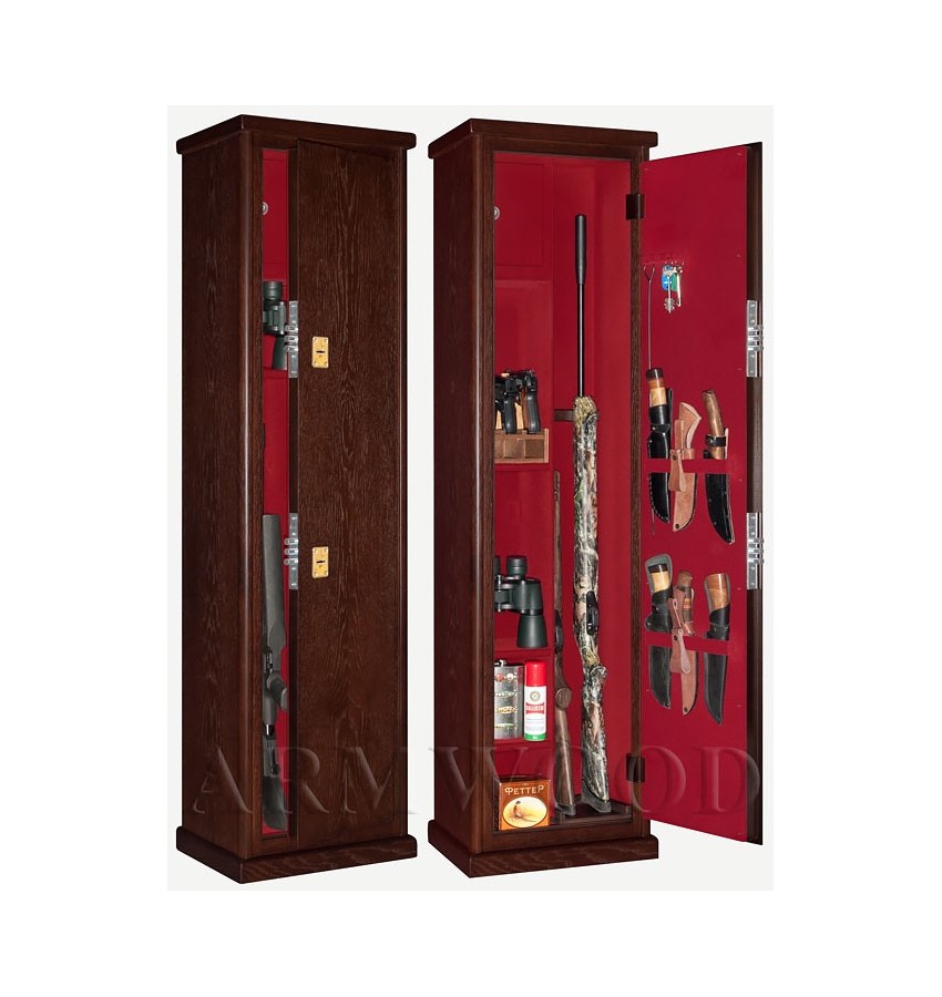 ОписаниеЭлитный оружейный сейф с отделкой натуральным деревом. Сейфы полностью удовлетворяют требованиям МВД к хранению оружия. Замок Два сертифицированных трёхригельных ключевых замка 3 класса. Замки разработаны совместно с Cisa (Италия). По желанию заказчика возможна поставка сейфов с замками производства Германии: Mauer или Wittkopp. Защита Дверь сейфа имеет коробчатую конструкцию для дополнительного усиления. Петли внутренние из стали 6мм. Усиленный корпус. Внутреннее устройство Внутри сейфа вертикальная перегородка, которая делит внутреннее пространство сейфа на два отделения. Внутри правого отделения верхние и нижние деревянные ложементы на два ствола. Внутри левого отделения вертикальнорасположенное внутреннее запираемое (патронное) отделение. Ниже запираемого отделения находятся три съёмные полки с регулируемой высотой установки. Если устанавливать не все полки, то на их месте можно хранить третий и четвёртый ствол. На двери сейфа: два удобных держателя для ножей, а также крючки для шомполов, ключей и пр.. Сейф имеет полную внутреннюю мягкую отделку флокированием бархатом (различных цветов по нашему каталогу). Например на фото в открытом виде флок – бордовый. Некоторые возможные варианты флока представлены на дополнительном фото. Полная внутренняя мягкая отделка защищает Ваше оружие от контакта с металлом, царапин, повреждений и т.п. Установка Предусмотрена возможность крепления сейфа к стене. По желанию заказчика возможна поставка в исполнении, предусматривающем также крепление к полу. Модификации Сейф может быть так же поставлен в базовой модификации Primary. По желанию заказчика возможно изменение размеров, конструкции, внутреннего устройства и т.п. Возможна замена верхних деревянных ложементов на ложементы других типов (роликовые ложементы-зажимы производства Германии, специальные ложементы для хранения оружия с крупной оптикой и т.п.). Дополнительная информация Имеются различные варианты отделки натуральным деревом сейфов серии Armwood (под различную мебель). Возможна поставка данного сейфа в исполнении универсальный сейф. В этом случае сейф поставляется с дополнительными полками и может использоваться не только как оружейный сейф, но и как личный и офисный сейф. ДоставкаСтоимость доставки по Москве в пределах МКАД: при заказе от 20 000 рублей бесплатно, менее 20000 руб - 1200 рублей Доставка возможна на 06.12.2025 или на 07.12.2025 Доставка по РФ и СНГ: по тарифам транспортных компаний Стоимость разгрузки: 900 руб СамовывозСамовывоз: со склада, после после подтверждения заказа ОплатаОплата: наличными при получении товара, безналичный расчет ( 100% предоплата) Сейф Armwood 524.074 Flock |