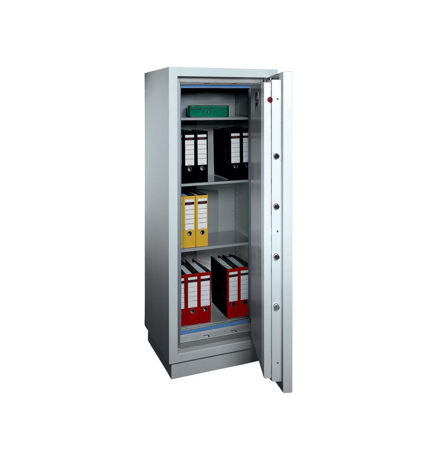 • Дверь четырехслойная, специальной конструкции (общая толщина 134мм), четырехсторонняя система запирания посредством ригелей (диаметр 25мм). • Угол раскрытия двери - 180o • Двойной механизм защиты: затрудняет вскрытие при взломе с помощью экстренного запирания (устройство блокировки ригелей) • Высококачественный многослойный корпус для оптимальной защиты. • Благодаря специальной герметичности сейф защищен от газов, выделяющихся при горении, и от воды для тушения • Специальное наполнение • Устойчивое положение благодаря серийной подготовки сейфов к креплению к полу