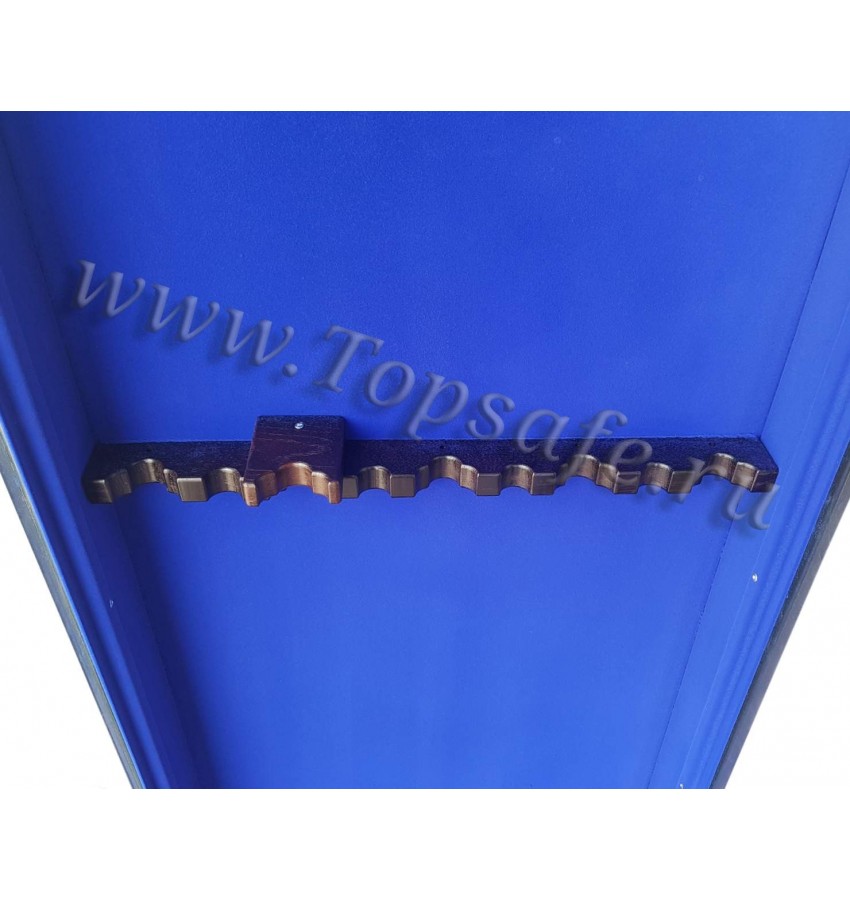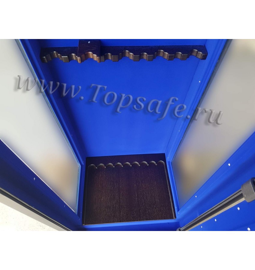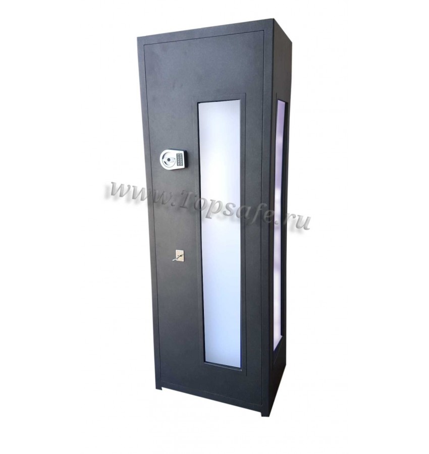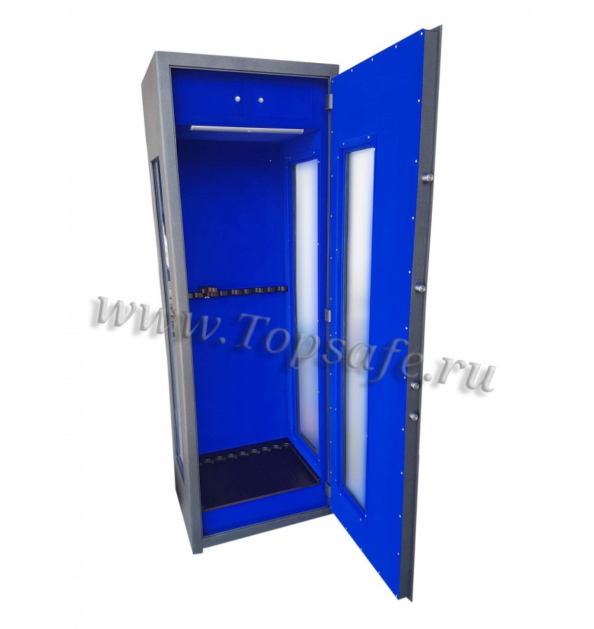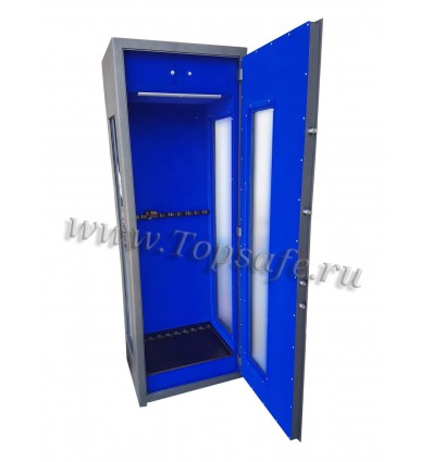 ОписаниеЭлитный оружейный сейф с бронестёклами и подсветкой. Сейф полностью удовлетворяет требованиям МВД к хранению оружия. Сейф имеет гигиенически безопасное износо- и коррозионно-устойчивое полимерно-порошковое покрытие на основе материалов производства Италии и Франции. Имеются покрытия различных цветов и структур: металлики, антики и д.р. Сейф имеет скрытый запираемый тайник. Замок Сейф оборудован высокосекретным сертифицированным электронным кодовым замком La Gard (США) и дополнительным ключевым замком. Замок La Gard Вы можете использовать с одним пользовательским кодом либо с двумя кодами: код руководителя (мастер-код) и рабочий код. Подробная и понятная инструкция на русском языке прилагается. Питание электронного замка от стандартной батарейки. Долгий срок службы батарейки. Простая смена разряженной батарейки. Сейф имеет мощную вертикальную и горизонтальную ригельную систему с запиранием по всем сторонам. Защита Уникальное изделие - передний лист двери сейфа изготовлен из стали 6мм., но так же и весь фасад корпуса изготовлен из стали 6мм.. Петли внутренние из стали 6мм. Усиленный корпус. Сейф оборудован 3-я бронестеклами (в двери и в обоих боковых стенах). Бронестёкла сертифицированы – 2-й класс пулестойкости. Внутреннее устройство Внутри сейфа два запираемых (патронных) отделения. Кроме того имеется ещё одно потайное отделение, запираемое сертифицированным трёхригельным сувальдным замком 2-го класса. Сейф оборудован удобными деревянными ложементами на 9 стволов. Сейф имеет электрическую светодиодную подсветку. Два режима работы подсветки: включение подсветки с помощью внешнего выключателя либо автоматическое включение подсветки при открывании двери сейфа (имеется датчик движения). Внутренняя отделка Сейф изготовлен в модификации FLOCK. Сейфы в модификации FLOCK имеют престижную полную внутреннюю мягкую отделку флокированием бархатом (различных цветов по нашему каталогу). Полная внутренняя мягкая отделка защищает Ваше оружие от контакта с металлом, царапин повреждений и т.п. Некоторые варианты флока представлены на дополнительном фото. Установка Предусмотрена возможность крепления сейфа к стене. По желанию заказчика возможна поставка в исполнении, предусматривающем так же крепление и к полу. Модификации В зависимости от типа внутренней отделки имеются две модификации этих оружейных сейфов. Модификация Primary (базовая) – без дополнительной мягкой отделки поверх порошкового покрытия (различных цветов по выбору). Ложементы «премиум». Модификация Flock - имеет дополнительную полную внутреннюю мягкую отделку флокированием бархатом (различных цветов по нашему каталогу). Ложементы «премиум». Металлические детали сейфа имеют гигиенически безопасное износо- и коррозионно-устойчивое полимерно-порошковое покрытие на основе материалов производства Италии или Франции. Имеются покрытия различных цветов и структур: металлики, антики и д.р. Некоторые варианты полимерно-порошковых покрытий представлены на дополнительном фото. Различные варианты цветового дизайна, например: корпус и двери имеют одинаковое покрытие, либо корпус и двери имеют покрытия разного цвета – выбирайте. По желанию заказчика возможно изменение размеров, конструкции, количества и размеров бронестекол, внутреннего устройства (в т.ч. добавление пол