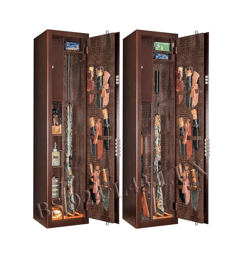 ОписаниеПолностью удовлетворяет требованиям МВД для физических и юридических лиц. Сейф имеет гигиенически безопасное износо- и коррозионно-устойчивое полимерное порошковое покрытие на основе материалов производства Италии и Франции. Имеются покрытия различных цветов и структур: металики, антики и д.р. Различные варианты цветового дизайна, например: корпус и двери имеют одинаковое покрытие, либо корпус и двери имеют покрытия разного цвета. Модель имеет полную внутреннюю мягкую отделку искусственной кожей. Полная внутренняя мягкая отделка защищает Ваше оружие от контакта с металлом, царапин, повреждений и т.п. Искусственная кожа имитирует кожу крокодилов, змей различных цветов! Замок Сейф оборудован двумя сертифицированными ключевыми замками: пятиригельный замок 4-го класса!!! повышенной секретности (1,5 миллиона комбинаций) и взломостойкости плюс трёхригельный замок 3 класса. Замки произведены совместно с Cisa (Италия). Также сейф оборудован вертикальной ригельной системой с запиранием по всем сторонам. Защита Изготовлен из стали толщиной 3 и 4 мм. Петли - внутренние из стали 6мм. Двери сейфа имеют коробчатую конструкцию для дополнительного усиления. Внутреннее устройство Сейф имеет вертикально расположенное внутреннее запираемое (патронное) отделение с полкой внутри. Ниже запираемого отделения находятся посадочные места для полок. Посадочные места для полок имеются также и в верхней части правого отделения сейфа. Сейф укомплектован 4-я полками. Все полки - съёмные с регулируемой высотой установки. Если устанавливать не все полки в левом отделении сейфа, то на их месте можно хранить третий и четвёртый ствол. Сейф имеет нижние и верхние деревянные ложементы с отделкой искусственной кожей. По желанию заказчика возможна замена верхних деревянных ложементов на роликовые ложементы-зажимы производства Германии либо дополнительная комплектация такими ложементами (например для боковой фиксации оружия с оптикой). Внимание, роликовые ложементы приобретаются отдельно со скидкой. Ружья в сейфе можно хранить как по одну сторону от перегородки, так и по обе стороны от перегородки. Сейф имеет декоративную полную внутреннюю мягкую отделку искусственной кожей Сейф дополнительно может быть укомплектован пистолетными ложементами (деревянными либо пластиковыми). Внутренняя поверхность двери сейфа позволяет хранить на ней ножи, шомпола, связки ключей и т.п. Установка Предусмотрена возможность крепления сейфа к стене. По желанию заказчика возможна поставка в исполнении, предусматривающем также крепление и к полу. Модификации Возможно изготовление модели с фасадом из стального листа толщиной 6мм, стоимость данной модификации выше на 20%. По желанию заказчика сейф дополнительно может быть оборудован опломбирующими устройствами. По желанию заказчика возможно изменение размеров, толщины металла, внутреннего устройства и т.п. Имеются в продаже оригинальные антресоли к сейфам этой серии. При приобретении сейфа в комплекте с антресолью требуйте обязательную скидку. ДоставкаСтоимость доставки по Москве в пределах МКАД: при заказе от 20 000 рублей бесплатно, менее 20000 руб - 1200 рублей Доставка возможна на 06.12.2025 или на 07.12.2025 Доставка по РФ и СНГ: по тарифам транспортных компаний Стоимость разгрузки: 900 руб СамовывозСамовывоз: со склада, посл