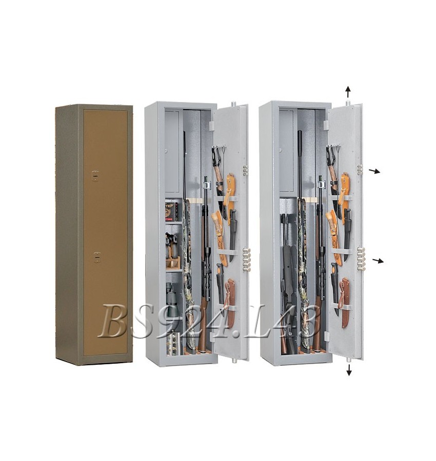 ОписаниеПолностью удовлетворяет требованиям МВД для физических и юридических лиц. Сейф имеет гигиенически безопасное износо- и коррозионно-устойчивое полимерно-порошковое покрытие на основе материалов производства Италии и Франции. Имеются покрытия различных цветов и структур: металлики, антики и д.р. Различные варианты цветового дизайна, например: корпус и двери имеют одинаковое покрытие, либо корпус и двери имеют покрытия разного цвета - выбирайте. Замок Сейф оборудован двумя сертифицированными ключевыми замками: пятиригельный замок 4-го класса!!! повышенной секретности (1,5 миллиона комбинаций) и взломостойкости плюс трёхригельный замок 3 класса. Замки произведены совместно с Cisa (Италия). Также сейф оборудован вертикальной ригельной системой с запиранием по всем сторонам. Защита Изготовлен из стали толщиной 3 и 4 мм. Петли - внутренние из стали 6мм. Двери сейфа имеют коробчатую конструкцию для дополнительного усиления. Внутреннее устройство Сейф имеет вертикальнорасположенное внутреннее запираемое (патронное) отделение с полкой внутри. Ниже запираемого отделения находятся три съёмные полки с регулируемой высотой установки. Если устанавливать не все полки, то на их месте можно хранить третий и четвёртый ствол. Сейф имеет нижние и верхние деревянные ложементы с отделкой искусственной кожей или бархатом различных цветов. По желанию заказчика возможна замена верхних деревянных ложементов на роликовые ложементы-зажимы производства Германии либо дополнительная комплектация такими ложементами (например для боковой фиксации оптики). Внимание, роликовые ложементы приобретаются отдельно со скидкой. Ружья в сейфе можно хранить как по одну сторону от перегородки, так и по обе стороны от перегородки. Сейф дополнительно может быть укомплектован пистолетными ложементами (деревянными либо пластиковыми). Внутренняя поверхность двери сейфа позволяет хранить на ней ножи, шомпола, связки ключей и т.п. Установка Предусмотрена возможность крепления сейфа к стене. По желанию заказчика возможна поставка в исполнении, предусматривающем также крепление и к полу. Модификации Возможно изготовление модели с фасадом из стального листа толщиной 6мм, стоимость данной модификации выше на 20%. Существует также модель BS924.L43.Lux, имеющая дополнительно полную внутреннюю мягкую отделку бархатом либо искусственной кожей различных цветов по нашему каталогу. Стоимость такой модели выше на 15%. Полная внутренняя мягкая отделка защищает Ваше оружие от контакта с металлом, царапин, повреждений и т.п. New! Поступила искусственная кожа, имитирующая кожу крокодилов, змей и т.п. Тоже различных цветов! По желанию заказчика сейф дополнительно может быть оборудован опломбирующими устройствами. По желанию заказчика возможно изменение размеров, толщины металла, внутреннего устройства и т.п. Имеются в продаже оригинальные антресоли к сейфам этой серии. При приобретении сейфа в комплекте с антресолью требуйте обязательную скидку. ДоставкаСтоимость доставки по Москве в пределах МКАД: при заказе от 20 000 рублей бесплатно, менее 20000 руб - 1200 рублей Доставка возможна на 06.12.2025 или на 07.12.2025 Доставка по РФ и СНГ: по тарифам транспортных компаний Стоимость разгрузки: 900 руб СамовывозСамовывоз: со склада, после после подтверждения заказа ОплатаОплата: наличными при полу