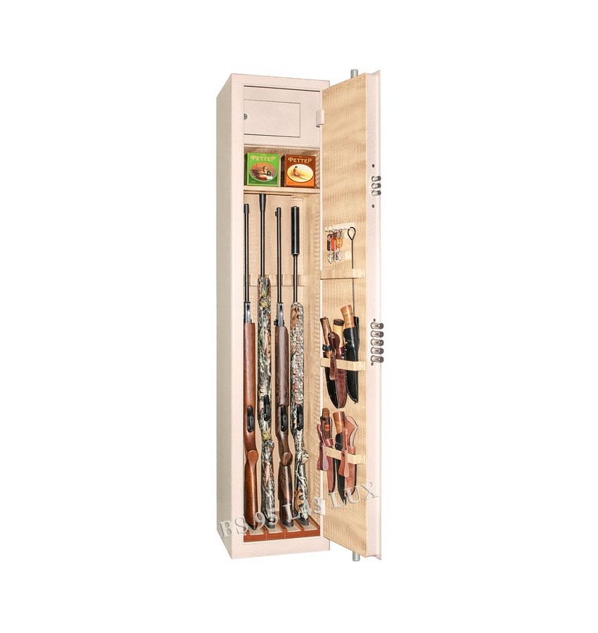 ОписаниеПолностью удовлетворяет требованиям МВД для физических и юридических лиц. Сейф имеет гигиенически безопасное износо- и коррозионно-устойчивое полимерно-порошковое покрытие на основе материалов производства Италии и Франции. Имеются покрытия различных цветов и структур: металлики, антики и д.р. Различные варианты цветового дизайна, например: корпус и двери имеют одинаковое покрытие, либо корпус и двери имеют покрытия разного цвета – выбирайте. Модель имеет полную внутреннюю мягкую отделку искусственной кожей. Полная внутренняя мягкая отделка защищает Ваше оружие от контакта с металлом, царапин, повреждений и т.п. Искусственная кожа имитирует кожу крокодилов, змей различных цветов! Замок Сейф оборудован двумя сертифицированными ключевыми замками: пятиригельный замок 4-го класса!!! повышенной секретности (1,5 миллиона комбинаций) и взломостойкости плюс трёхригельный замок 3 класса. Замки произведены совместно с Cisa (Италия). Также сейф оборудован вертикальной ригельной системой с запиранием по всем сторонам. Защита Изготовлен из стали толщиной 3 и 4 мм. Петли – внутренние из стали 6мм. Дверь сейфа имеет коробчатую конструкцию для дополнительного усиления. Внутреннее устройство Сейф имеет внутреннее запираемое (патронное) отделение а также нижние и верхние фигурные ложементы на 5 стволов. Все ложементы - деревянные с отделкой искусственной кожей или бархатом различных цветов. По желанию заказчика возможна замена верхних деревянных ложементов на роликовые ложементы-зажимы производства Германии либо дополнительная комплектация такими ложементами (например для боковой фиксации оружия с оптикой). Внимание, роликовые ложементы приобретаются отдельно со скидкой. На внутренней поверхности двери сейфа имеется лоток (для хранения коробок с патронами и т.п.), крючки для хранения шомполов и ключей и две рамки для хранения ножей. Все вышеперечисленные элементы на внутренней поверхности двери – съёмные. Установка Предусмотрена возможность крепления сейфа к стене. По желанию заказчика возможна поставка в исполнении, предусматривающем также крепление и к полу. Модификации Высота хранимых стволов 1330 либо 1525мм., в зависимости от модификации - уточняйте это при заказе. Возможно изготовление модели с фасадом из стального листа толщиной 6мм, стоимость данной модификации выше на 20%. По желанию заказчика сейф дополнительно может быть оборудован опломбирующими устройствами. По желанию заказчика возможно изменение размеров, толщины металла, внутреннего устройства и т.п. ДоставкаСтоимость доставки по Москве в пределах МКАД: при заказе от 20 000 рублей бесплатно, менее 20000 руб - 1200 рублей Доставка возможна на 06.12.2025 или на 07.12.2025 Доставка по РФ и СНГ: по тарифам транспортных компаний Стоимость разгрузки: 900 руб СамовывозСамовывоз: со склада, после после подтверждения заказа ОплатаОплата: наличными при получении товара, безналичный расчет ( 100% предоплата) Сейф Gunsafe BS95.L43 Lux |