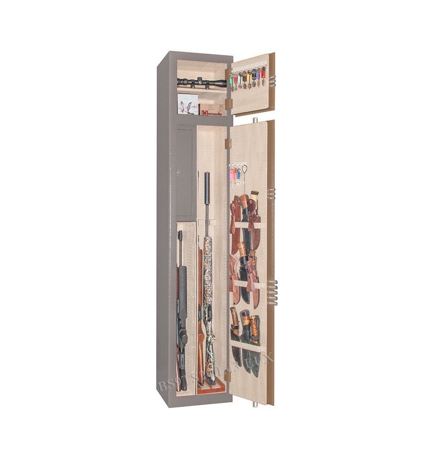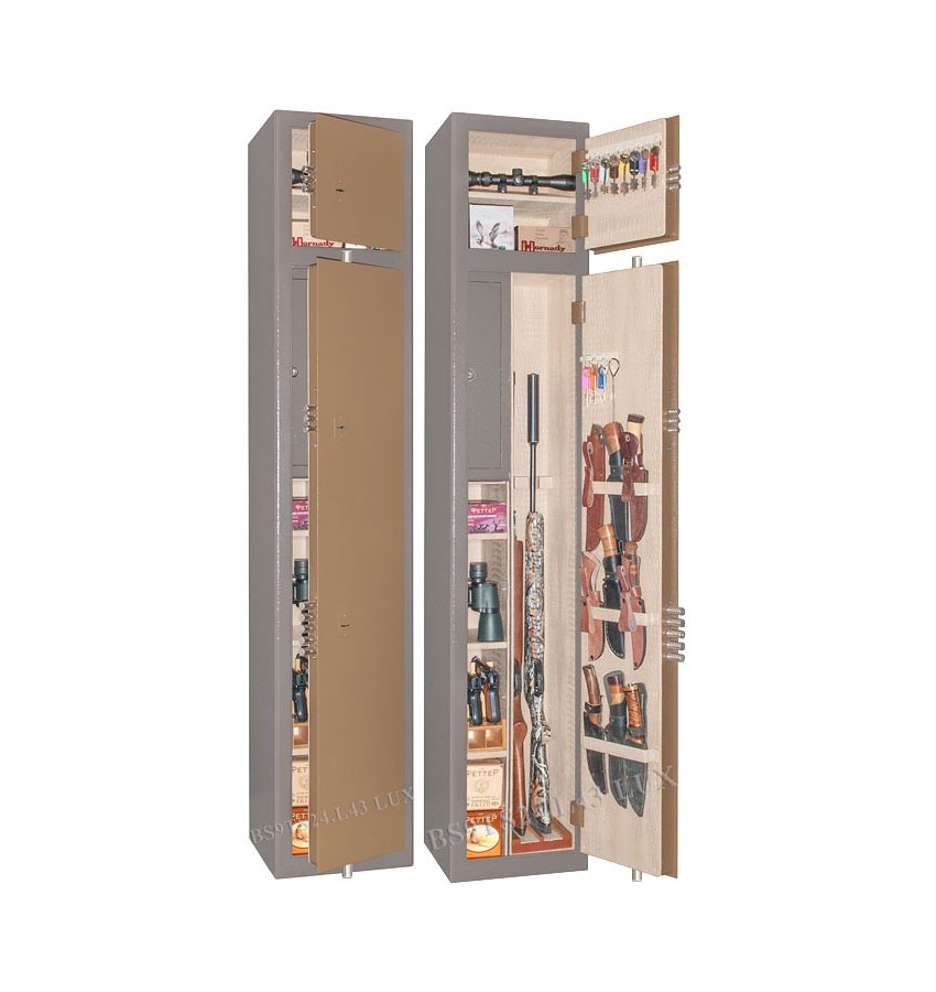 ОписаниеДвухсекционный оружейный сейф. Полностью удовлетворяет требованиям МВД для физических и юридических лиц. Сейф имеет гигиенически безопасное износо- и коррозионно-устойчивое полимерно-порошковое покрытие на основе материалов производства Италии и Франции. Имеются покрытия различных цветов и структур: металлики, антики и д.р. Различные варианты цветового дизайна, например: корпус и двери имеют одинаковое покрытие, либо корпус и двери имеют покрытия разного цвета - выбирайте. Модель имеет полную внутреннюю мягкую отделку искусственной кожей. Полная внутренняя мягкая отделка защищает Ваше оружие от контакта с металлом, царапин, повреждений и т.п. Искусственная кожа имитирует кожу крокодилов, змей различных цветов! Замок Замки произведены совместно с Cisa (Италия). Дверь нижней секции сейфа оборудована двумя сертифицированными ключевыми замками: пятиригельный замок 4-го класса!!! повышенной секретности (1,5 миллиона комбинаций) и взломостойкости плюс трёхригельный замок 3 класса. Также имеется вертикальная ригельная система с запиранием по всем сторонам. Дверь верхней секции сейфа оборудована трёхригельным замоком 3 класса. Защита Изготовлен из стали толщиной 3 и 4 мм. Петли – внутренние из стали 6мм. Дверь сейфа имеет коробчатую конструкцию для дополнительного усиления. Внутреннее устройство Внутри нижней секции сейфа имеется вертикальнорасположенное внутреннее запираемое (патронное) отделение с полкой внутри. Ниже запираемого отделения находятся три съёмные полки с регулируемой высотой установки. Если устанавливать не все полки, то на их месте можно хранить третий и четвёртый ствол. Так же имеются нижние и верхние деревянные ложементы с отделкой искусственной кожей или бархатом различных цветов. По желанию заказчика возможна замена верхних деревянных ложементов на роликовые ложементы-зажимы производства Германии либо дополнительная комплектация такими ложементами (например для боковой фиксации оптики). Внимание, роликовые ложементы приобретаются отдельно со скидкой. Ружья в сейфе можно хранить как по одну сторону от перегородки, так и по обе стороны от перегородки. Сейф дополнительно может быть укомплектован пистолетными ложементами (деревянными либо пластиковыми). Внутренняя поверхность двери нижней секции сейфа позволяет хранить на ней ножи, шомпола, связки ключей и т.п. Внутри верхней секции сейфа - съёмная полка. На внутренней поверхности двери верхней секции имеются крючки для хранения связок ключей и т.п. Установка Предусмотрена возможность крепления сейфа к стене. По желанию заказчика возможна поставка в исполнении, предусматривающем также крепление и к полу. Модификации Возможно изготовление модели с фасадом из стального листа толщиной 6мм, стоимость данной модификации выше на 20%. По желанию заказчика сейф дополнительно может быть оборудован опломбирующими устройствами. По желанию заказчика возможно изменение размеров, толщины металла, внутреннего устройства и т.п. ДоставкаСтоимость доставки по Москве в пределах МКАД: при заказе от 20 000 рублей бесплатно, менее 20000 руб - 1200 рублей Доставка возможна на 06.12.2025 или на 07.12.2025 Доставка по РФ и СНГ: по тарифам транспортных компаний Стоимость разгрузки: 1100 руб СамовывозСамовывоз: со склада, после после подтверждения заказа ОплатаОплата: наличными пр