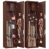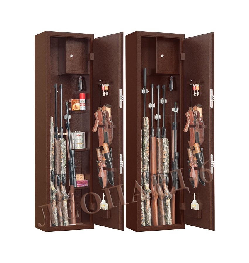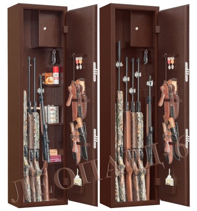 ОписаниеПолностью удовлетворяет требованиям МВД к хранению оружия физическими и юридическими лицами. Сейф имеет коррозионно- и износо-стойкое, гигиенически-безопасное полимерно-порошковое покрытие на основе материалов производства Италии. Замок Сейф оборудован двумя сертифицированными трёхригельными замками второго класса. Защита Изготовлен из стали толщиной 3 мм. Дверь имеет коробчатую конструкцию для дополнительного усиления. Петли-внутренние из стали 6мм. Внутреннее устройство Запираемое (патронное) отделение и 3 съёмные полки. Внутри корпуса имеется крючок для хранения оружейно-охотничьей амуниции и др. На внутренней стороне двери сейфа имеются: лоток, 2 рамки для хранения ножей, крючки для хранения шомполов, ключей и т.п. Дно сейфа отделано ковролином. Этот шкаф уже укомплектован 2 удобными мягкими ложементами, рассчитанными на хранение, соответственно, 2 и 2 стволов. Ложементы изготовлены из экологически чистого эластичного и влагостойкого полимерного материала, устойчивого к деформации и разрыву. Ложементы легко устанавливаются в любое нужное место сейфа при помощи специальной клеевой основы на обратной стороне, и надежно фиксируют оружие внутри сейфа. Установка Предусмотрена возможность крепления сейфа к стене. По желанию заказчика возможна так же поставка в исполнении, предусматривающем крепление и к полу. ДоставкаСтоимость доставки по Москве в пределах МКАД: при заказе от 20 000 рублей бесплатно, менее 20000 руб - 1200 рублей Доставка возможна на 15.12.2025 или на 16.12.2025 Доставка по РФ и СНГ: по тарифам транспортных компаний Стоимость разгрузки: 900 руб СамовывозСамовывоз: со склада, после после подтверждения заказа ОплатаОплата: наличными при получении товара, безналичный расчет ( 100% предоплата) Сейф Gunsafe Леопард-6 |