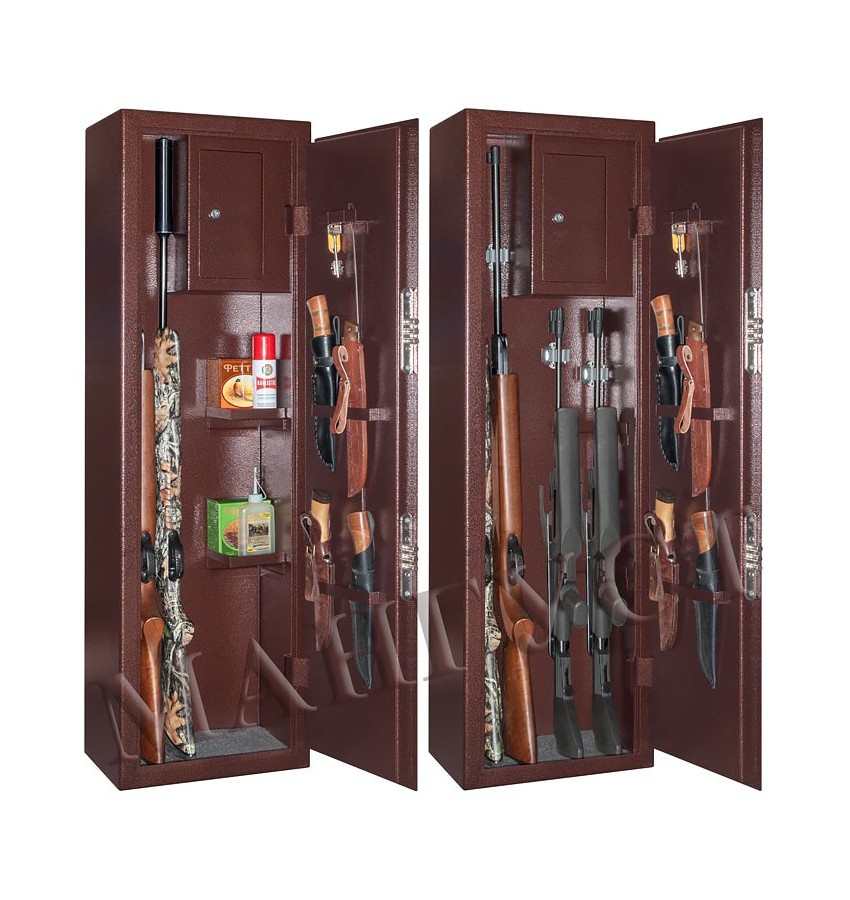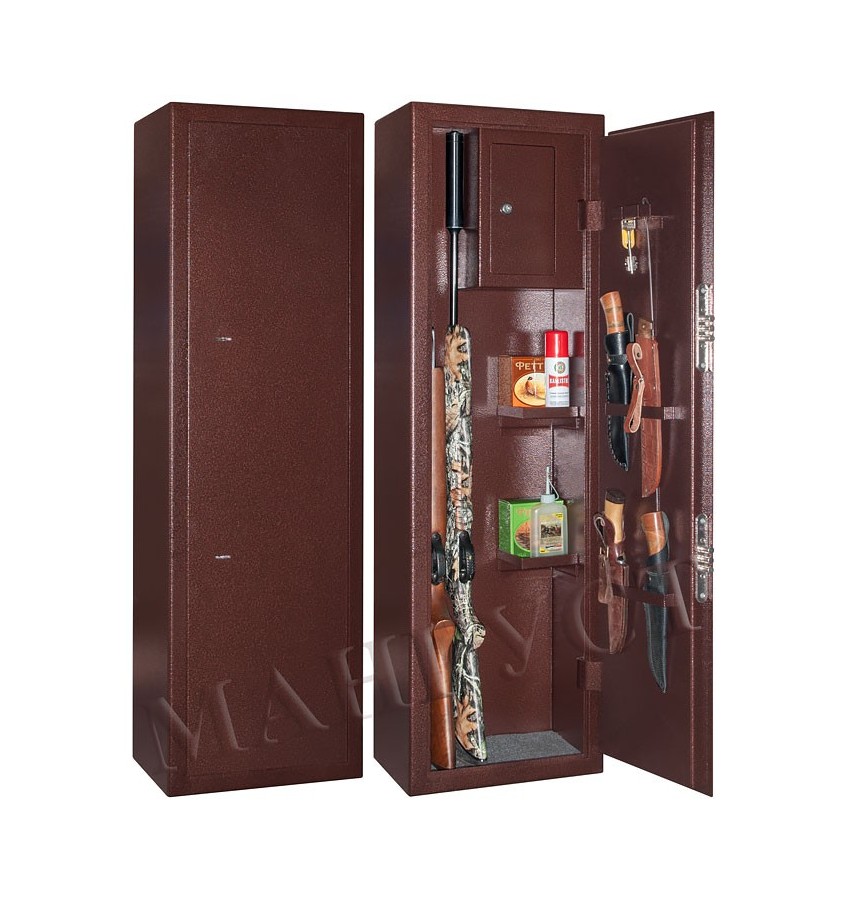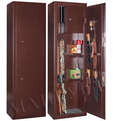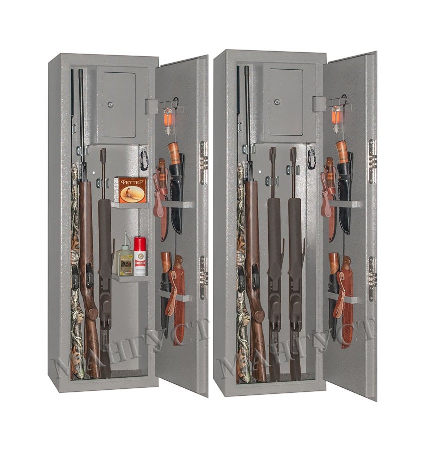 ОписаниеПолностью удовлетворяет требованиям МВД к хранению оружия физическими и юридическими лицами. Сейф имеет коррозионно- и износо-стойкое, гигиенически-безопасное полимерно-порошковое покрытие на основе материалов производства Италии. Замок Сейф оборудован двумя сертифицированными трёхригельными замками второго класса. Защита Изготовлен из стали толщиной 3 мм. Дверь имеет коробчатую конструкцию для дополнительного усиления. Петли-внутренние из стали 6мм. Внутреннее устройство Запираемое (патронное) отделение и 2 съёмные полки. Внутри корпуса имеется крючок для хранения оружейно-охотничьей амуниции и др. На внутренней стороне двери сейфа имеются 2 рамки для хранения ножей, крючки для хранения шомполов, ключей и т.п. Дно сейфа отделано ковролином. Этот шкаф уже укомплектован удобными мягкими ложементами, рассчитанными на хранение 2 стволов. Ложементы изготовлены из экологически чистого эластичного и влагостойкого полимерного материала, устойчивого к деформации и разрыву. Ложементы легко устанавливаются в любое нужное место сейфа при помощи специальной клеевой основы на обратной стороне, и надежно фиксируют оружие внутри сейфа. Установка Предусмотрена возможность крепления сейфа к стене. По желанию заказчика возможна так же поставка в исполнении, предусматривающем крепление и к полу. Модификации Сейфы этой модели стандартно поставляются с двумя вариантами полимерно-порошковых покрытий: эффект молотковой эмали серый (как на фото) либо медный антик. Уточняйте при заказе - в каких цветах имеются сейфы в настоящее время. Ассортимент сейфов по цвету может меняться. ДоставкаСтоимость доставки по Москве в пределах МКАД: при заказе от 20 000 рублей бесплатно, менее 20000 руб - 1200 рублей Доставка возможна на 15.12.2025 или на 16.12.2025 Доставка по РФ и СНГ: по тарифам транспортных компаний Стоимость разгрузки: 750 руб СамовывозСамовывоз: со склада, после после подтверждения заказа ОплатаОплата: наличными при получении товара, безналичный расчет ( 100% предоплата) Сейф Gunsafe Мангуст |