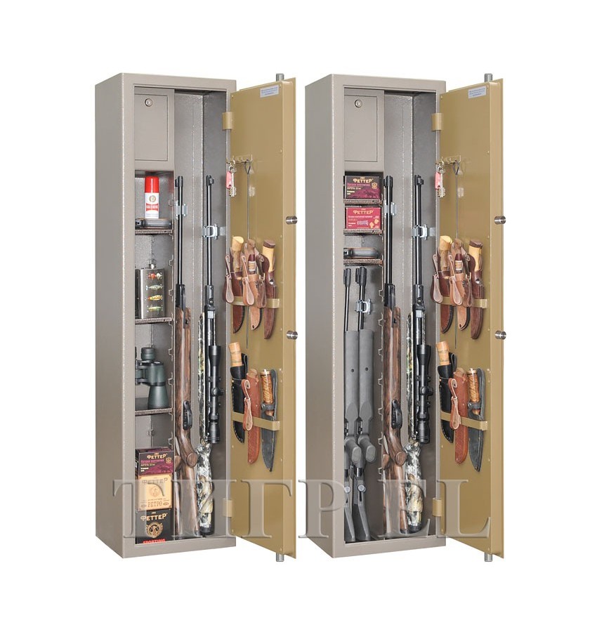 ОписаниеПолностью удовлетворяет требованиям МВД к хранению оружия. Сейф имеет коррозионно- и износо-стойкое, гигиенически-безопасное полимерно-порошковое покрытие на основе материалов производства Италии. Замок Дверь обрудована мощным поворотным ригельным запирающим механизмом, с запиранием по трём сторонам. Cейф оборудован электронным кодовым замком. Замок имеет сертификат Евросоюза, ESB S(Германия). Защита Изготовлен из стали толщиной 3 мм. Дверь имеет коробчатую конструкцию для дополнительного усиления. Петли-внутренние из стали 6мм. Внутреннее устройство Запираемое (патронное) отделение и 3 съемные регулируемые по высоте полки. Ружья можно хранить как по одну сторону от перегородки, так и по обе стороны от перегородки. Дно сейфа отделано ковролином. Внутренняя поверхность двери имеет крючки и держатели для хранения ножей, шомполов и т.п. Этот шкаф уже укомплектован удобными мягкими ложементами, рассчитанными на хранение 2 стволов. Ложементы изготовлены из экологически чистого эластичного и влагостойкого полимерного материала, устойчивого к деформации и разрыву. Ложементы легко устанавливаются в любое нужное место сейфа при помощи специальной клеевой основы на обратной стороне, и надежно фиксируют оружие внутри сейфа. Установка Предусмотрена возможность крепления сейфа к стене и к полу. ДоставкаСтоимость доставки по Москве в пределах МКАД: при заказе от 20 000 рублей бесплатно, менее 20000 руб - 1200 рублей Доставка возможна на 06.12.2025 или на 07.12.2025 Доставка по РФ и СНГ: по тарифам транспортных компаний Стоимость разгрузки: 900 руб СамовывозСамовывоз: со склада, после после подтверждения заказа ОплатаОплата: наличными при получении товара, безналичный расчет ( 100% предоплата) Сейф Gunsafe ТИГР EL |