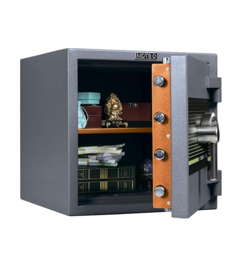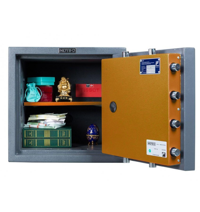 ОписаниеСейф MDTB Bastion M 46 E имеет прочный каркас, благодаря специальному армированному бетону залитому в корпус и двери. Сейф оснащен трехсторонней ригельной системой запирания по трем сторонам двери. Также присутствует сплошной пассивный ригель.