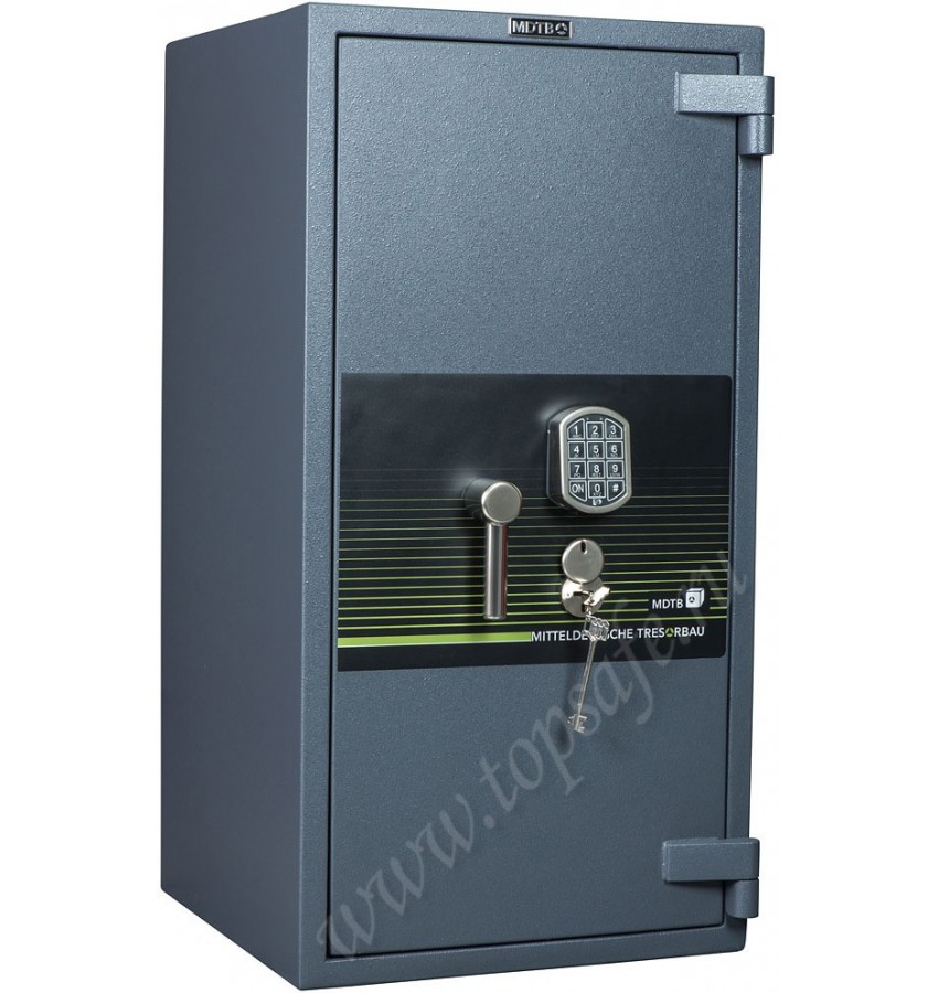 ОписаниеСейф MDTB Fort M 1368 EK имеет 3-ий класс взломостойкости. Корпус и дверь модели залиты высокопрочным армированным бетоном. Сейф оснащен ригельной системой запирания с блокировкой ригелей при попытке взлома. Кроме того, модель имеет электронный PS 600/E05 и ключевой KABA MAUER замки с защитой от высверливания, выбивания, выжигания. Двери также защищены от термического воздействия.