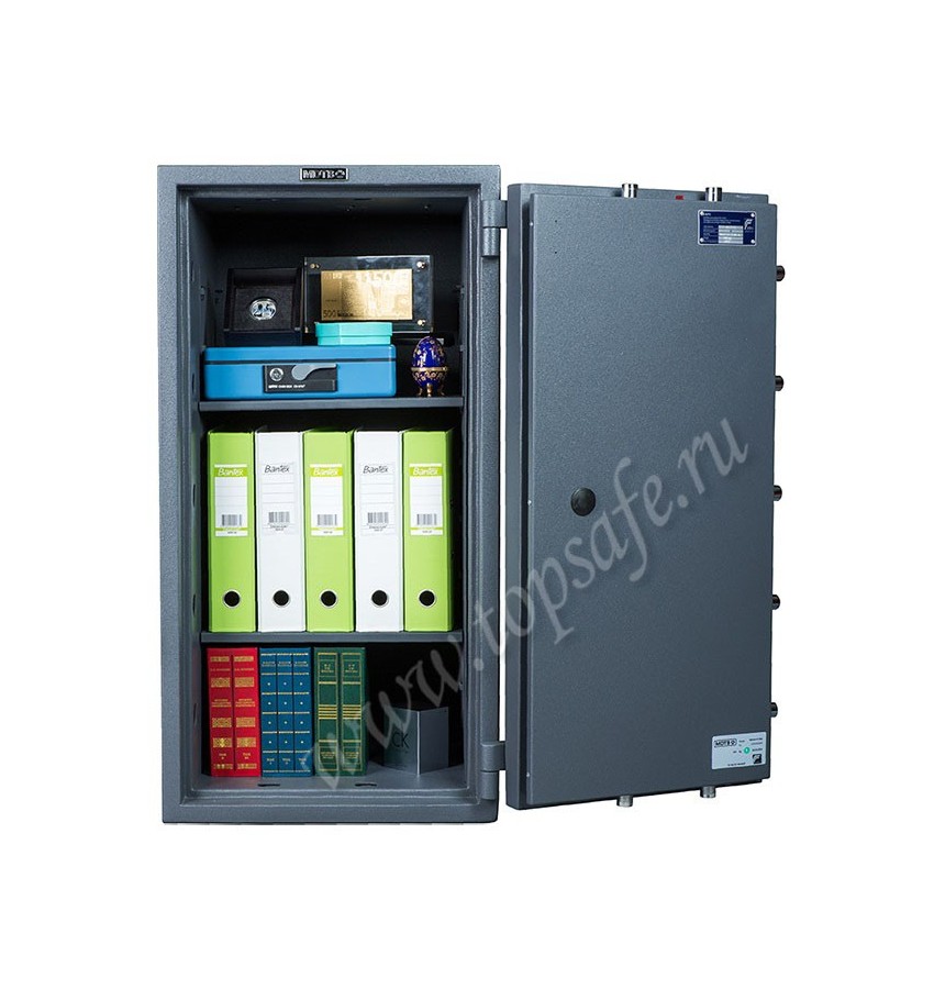 В сейф встроено два замка: электронный PS 600/E05 и ключевой KABA MAUER с защитой от высверливания, выбивания и выжигания. Дверь также имеет защиту от выжигания.