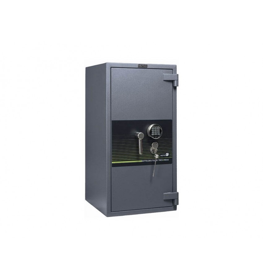 ОписаниеСейф MDTB Fort M 99 EK имеет ключевой и электронный замки, KABA MAUER и PS 600/E05 соответственно. Ригельная система запирания расположена по трем сторонам двери и блокируется при попытке взлома замков. Сплошной пассивный ригель залит бетоном.
