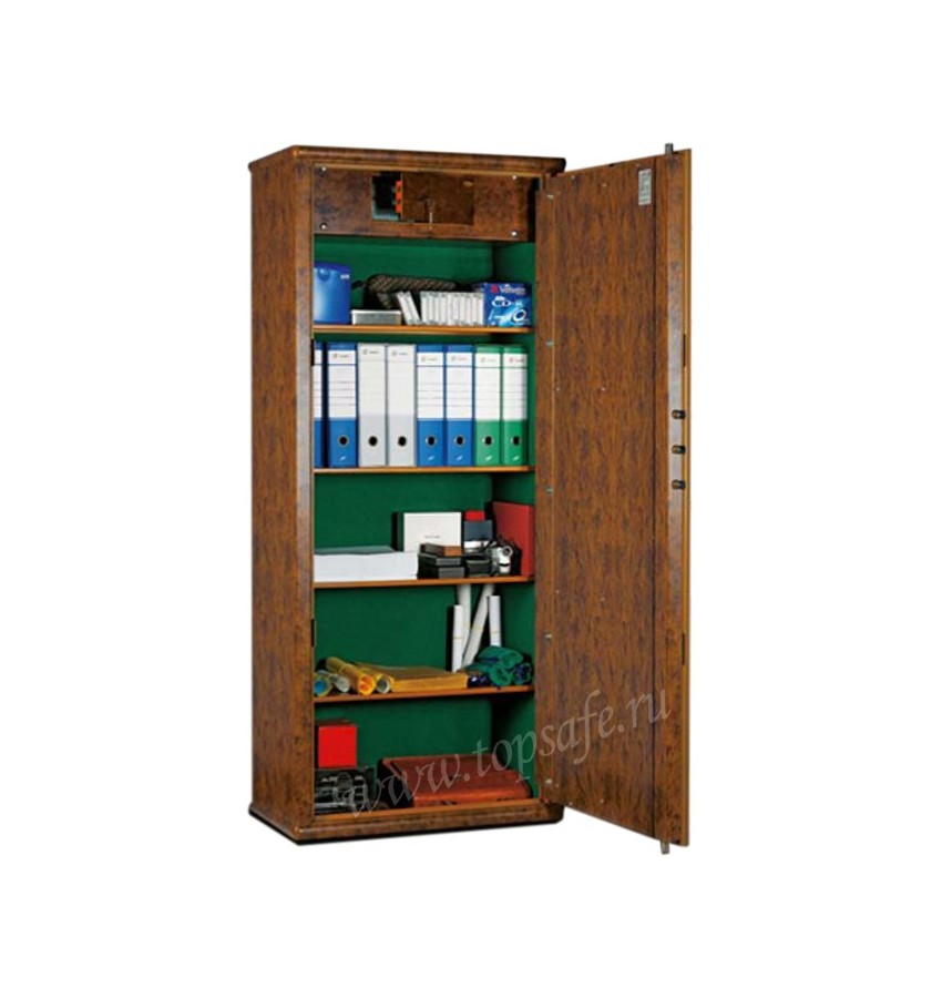 Сейф покрыт термостойким, износоустойчивым покрытием с фактурой дерева. Внутренняя часть окрашена и покрыта фетром.