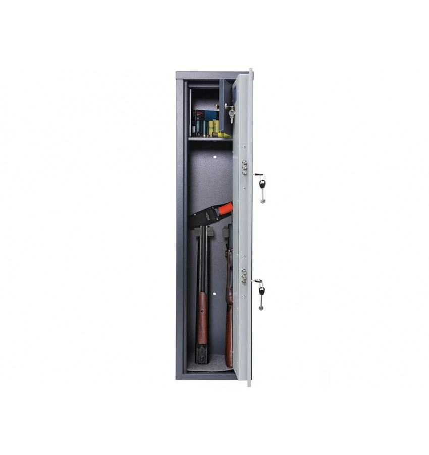 - толщина металла корпуса и двери – 2 мм оборудованы патронным отделением, запирающимся на ключ, и ложементами для ружей
