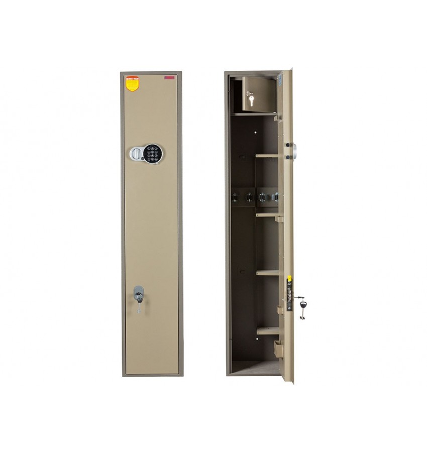 - толщина металла корпуса и двери – 2 мм оборудованы патронным отделением, запирающимся на ключ, полками и ложементами для ружей