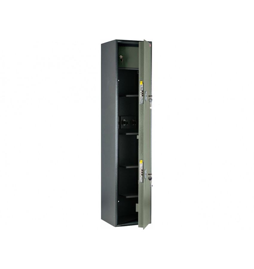 - толщина металла корпуса и двери – 2 мм оборудованы патронным отделением, запирающимся на ключ, полками и ложементами для ружей