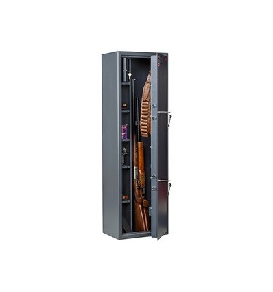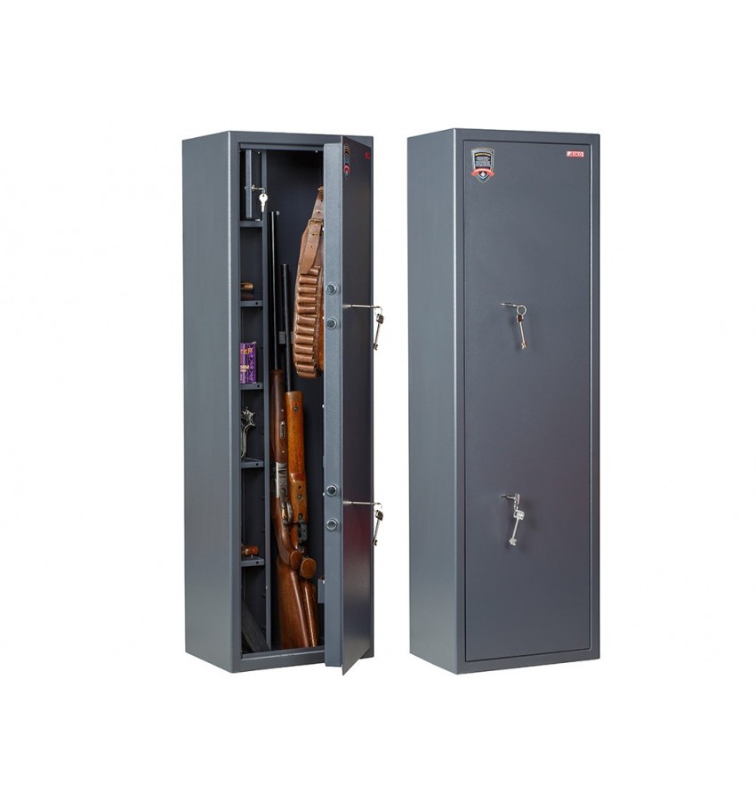 - толщина металла корпуса и двери – 3 мм оборудованы патронным отделением, запирающимся на ключ, полками и ложементами для ружей