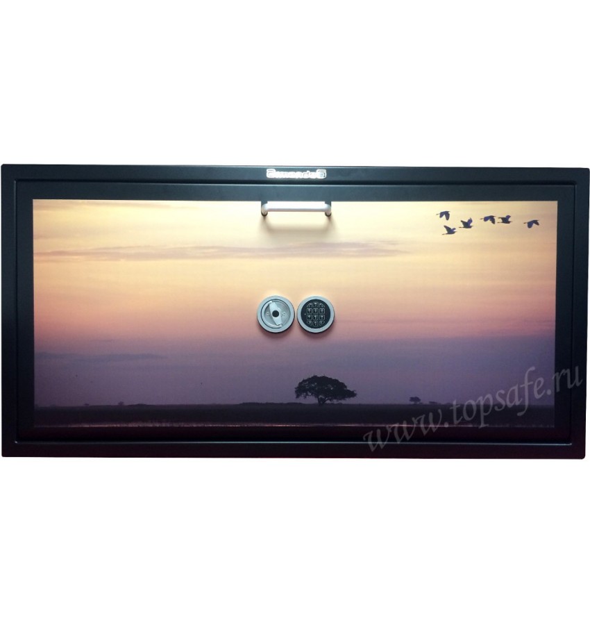 Внутри модели имеется полое пространство для хранения инструментов для чистки оружия, а также для галогенных ламп с автоматическим режимом работы. Внешний вид внутренней и внешней частей сейфа может быть изменен по желанию заказчика. По умолчанию лицевая панель украшена изображением "Саванна". Корпус сейфа покрыт несколькими слоями порошковой краски.