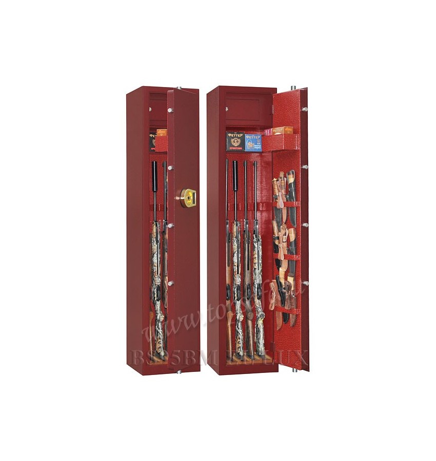 Сейф имеет нижние и верхние фигурные ложементы на 5 стволов. Все ложементы - деревянные с отделкой искусственной кожей. По желанию заказчика возможна замена верхних деревянных ложементов на роликовые ложементы-зажимы производства Германии либо дополнительная комплектация такими ложементами (например для боковой фиксации оружия с оптикой). Внимание, роликовые ложементы приобретаются отдельно со скидкой. Обсудите это при заказе со своим менеджером.