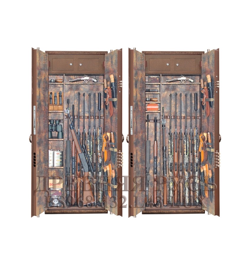 По желанию заказчика возможны дополнительные опции на внутренних поверхностях дверей: держатели для шомполов, крючки, лотки, держатели для ножей и т.п.
