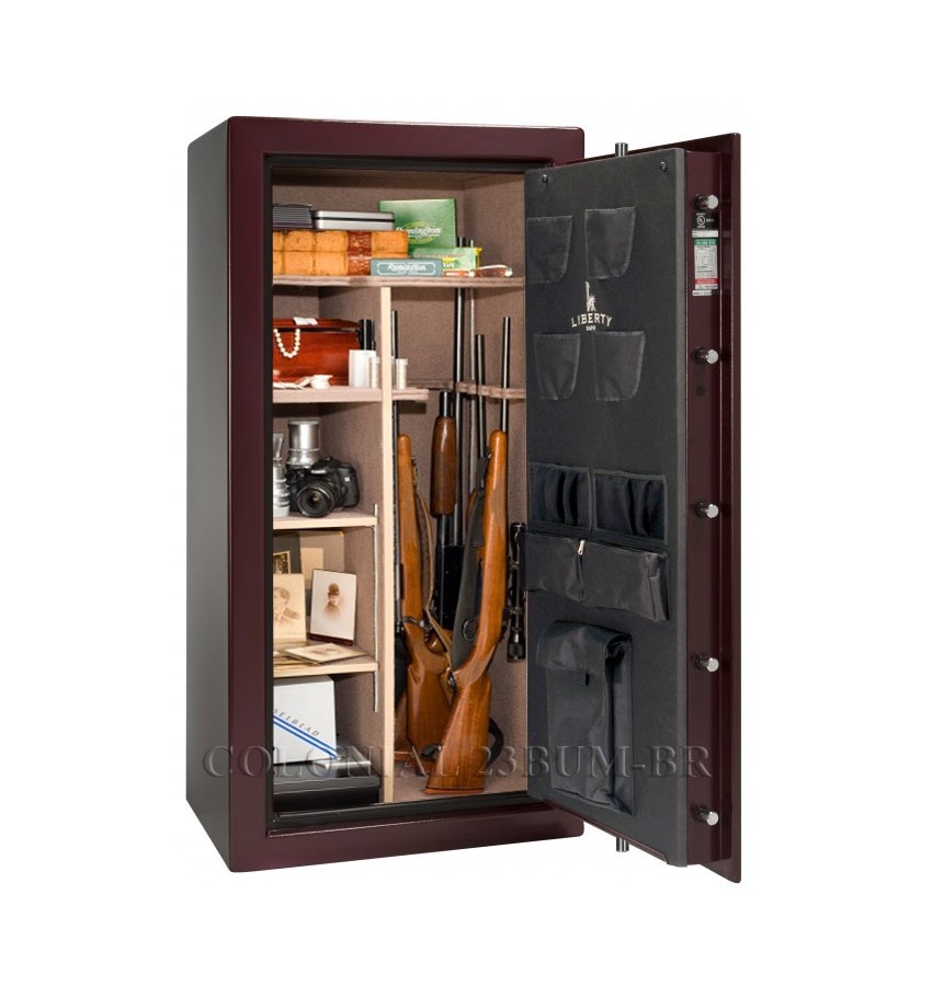 Внешняя отделка:Декоративное покрытие Высота ружей:1415мм Покрытие: "Бордо" полуглянцевый. Производство Liberty Safe and Security Products, Inc (США, штат Юта). Сейфы Liberty сертифицированы на взломостойкость и огнестойкость в США. Полностью удовлетворяют требованиям МВД. Сейфы изготавливаются непосредственно в США. Замок Сейф оборудован высокосекретным электронным кодовым замком Sargent & Greenleaf (США). Этот замок вы можете по вашему желанию эксплуатировать как в режиме одного кода, так и в режимах используя от 2-х до 9-и кодов. Можно использовать иерархическую систему кодов: мастер-код – код руководителя – пользовательские коды. Защита замка – трёхслойной закалённой пластиной. New! Кодовая панель замка теперь имеет удобную светодиодную подсветку. Защита Усиленный корпус. Дверь усиленная коробчатой конструкции. Дополнительное усиление двери внутренней стальной полосой. Дверь оборудована мощной многосторонней ригельной запирающей системой, 12 активных ригелей диаметром 25мм. X-Cam Mech - эксцентриковый запирающий механизм. Инновационный привод поворотного запирающего механизма «SURETIGHT» с муфтой скольжения для защиты замка при приложении крутящего мышечного усилия при попытке взлома. Устойчивость к взлому сейфа не менее 30Ес. Система внутренних и внешних Fail-Safe™ relocker для блокировки замка или/и запирающего механизма при механических и термических воздействиях на замок. Security Level (взломостойкость по шкале Liberty Safe) – 16. Fire Rating 1200°F (огнестойкость при температуре в испытательной печи 649°C, заданный предел огнестойкости 177°C) – 1,0H. BTU Heat Rating (огнестойкость в Британских единицах тепловой мощности) – 83,000 BTUs. Внутреннее устройство Внутри сейфа ложементы и полки, съёмные с регулируемой высотой установки. Внутренняя поверхность двери сейфа имеет держатели для пистолетов, карманы и удобные закрывающиеся сумки. Внутренняя поверхность сейфа, а также внутренние элементы имеют мягкую отделку. Установка Конструкцией сейфа предусмотрена возможность его крепления к полу. Дополнительная информация В сейфе ружья можно хранить как по одну сторону от перегородки, так и по обе стороны от перегородки.