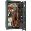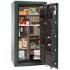 Покрытие: Тёмно-зелёный полуглянцевый. Универсальный сейф, может использоваться как в качестве оружейного сейфа, так и в качестве личного сейфа. Производство Liberty Safe and Security Products, Inc (США, штат Юта). Сейфы Liberty сертифицированы на взломостойкость и огнестойкость в США. Полностью удовлетворяют требованиям МВД. Великолепный дизайн! Сейфы изготавливаются непосредственно в США. Замок Сейф оборудован высокосекретным электронным кодовым замком Sargent & Greenleaf (США). Этот замок вы можете по вашему желанию эксплуатировать как в режиме одного кода, так и в режимах используя от 2-х до 9-и кодов. Можно использовать иерархическую систему кодов: мастер-код – код руководителя – пользовательские коды. Защита замка – трёхслойной закалённой пластиной. New! Кодовая панель замка теперь имеет удобную светодиодную подсветку. Защита Усиленный корпус. Дверь усиленная коробчатой конструкции. Дополнительное усиление двери внутренним стальным листом. Дверь оборудована мощной многосторонней ригельной запирающей системой, 14 активных ригелей диаметром 32мм. Специальные пластины внутри двери на рейках с ригелями для усиления защиты при попытке вскрытия монтировкой, рычагом и т.п. Инновационный поворотный запирающий механизм DX-90 MONSTER MECH с усиленной защитой. Увеличенный выход ригелей по сравнению с традиционными запирающими механизмами. Тип запирающего механизма - со смещенным центром, эксцентриковый, прямого привода. Этот запирающий механизм имеет лучшую защиту от бокового выбивания ригелей (по сравнению с традиционными запирающими механизмами). Инновационный привод поворотного запирающего механизма «SURETIGHT» с муфтой скольжения для защиты замка при приложении крутящего мышечного усилия при попытке взлома. Устойчивость к взлому сейфа не менее 30Ес. Система внутренних и внешних Fail-Safe™ relocker для блокировки замка или/и запирающего механизма при механических и термических воздействиях на замок. Security Level (взломостойкость по шкале Liberty Safe) – 23. Fire Rating 1200°F (огнестойкость при температуре в испытательной печи 649°C, заданный предел огнестойкости 177°C) – 1,25H. BTU Heat Rating (огнестойкость в Британских единицах тепловой мощности) – 86,000 BTUs. Внутреннее устройство Внутри сейфа ложементы и полки, съёмные с регулируемой высотой установки. Внутренняя поверхность корпуса, а также внутренние элементы имеют мягкую отделку. Внутренняя поверхность двери сейфа имеет держатели для пистолетов, карманы, держатели для ножей и т.п., удобные закрывающиеся сумки. Так же имеется специальный закрывающийся пакет COOL POCKET™ для хранения особо важных документов. Он изготовлен из специальных материалов и обеспечивают дополнительную тепловую защиту. Сейф имеет автономную (питание – стандартные батарейки) светодиодную подсветку, два светильника с датчиками движения. Подсветка включается автоматически при открывании двери сейфа. Установка Конструкцией сейфа предусмотрена возможность его крепления к полу. Дополнительная информация В сейфе ружья можно хранить как по одну сторону от перегородки, так и по обе стороны от перегородки. Примечание Лицензирован Национальной Стрелковой Ассоциацией США (NRA®)