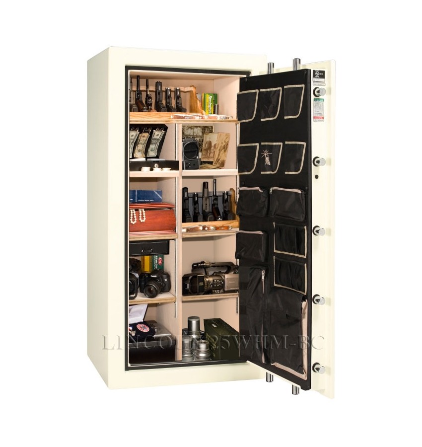 Внешняя отделка:Декоративное покрытие Высота ружей:1375мм Покрытие: «Слоновая кость» полуглянцевый. Универсальный сейф, может использоваться как в качестве оружейного сейфа, так и в качестве личного сейфа. Производство Liberty Safe and Security Products, Inc (США, штат Юта). Сейфы Liberty сертифицированы на взломостойкость и огнестойкость в США. Полностью удовлетворяют требованиям МВД. Великолепный дизайн! Сейфы изготавливаются непосредственно в США. Замок Сейф оборудован высокосекретным электронным кодовым замком Sargent & Greenleaf (США). Этот замок вы можете по вашему желанию эксплуатировать как в режиме одного кода, так и в режимах используя от 2-х до 9-и кодов. Можно использовать иерархическую систему кодов: мастер-код – код руководителя – пользовательские коды. Инновационная защита замка – закалённой пластиной с вращающимися шариками. Шарики вращаются если в них упирается сверло. New! Кодовая панель замка теперь имеет удобную светодиодную подсветку. Защита Усиленный корпус. Дверь усиленная коробчатой конструкции. Дополнительное усиление двери внутренним стальным листом. Дверь оборудована мощной многосторонней ригельной запирающей системой, 14 активных ригелей диаметром 32мм. Специальные пластины внутри двери на рейках с ригелями для усиления защиты при попытке вскрытия монтировкой, рычагом и т.п. Инновационный поворотный запирающий механизм DX-90 MONSTER MECH с усиленной защитой. Увеличенный выход ригелей по сравнению с традиционными запирающими механизмами. Тип запирающего механизма - со смещенным центром, эксцентриковый, прямого привода. Этот запирающий механизм имеет лучшую защиту от бокового выбивания ригелей (по сравнению с традиционными запирающими механизмами). Инновационный привод поворотного запирающего механизма «SURETIGHT» с муфтой скольжения для защиты замка при приложении крутящего мышечного усилия при попытке взлома. Устойчивость к взлому сейфа не менее 30Ес. Система внутренних и внешних Fail-Safe™ relocker для блокировки замка или/и запирающего механизма при механических и термических воздействиях на замок. Security Level (взломостойкость по шкале Liberty Safe) – 24. Fire Rating 1200°F (огнестойкость при температуре в испытательной печи 649°C, заданный предел огнестойкости 177°C) – 1,5H. BTU Heat Rating (огнестойкость в Британских единицах тепловой мощности) – 95,000 BTUs. Внутреннее устройство Внутри сейфа ложементы и полки, съёмные с регулируемой высотой установки. Внутренняя поверхность корпуса, а также внутренние элементы имеют мягкую отделку. Сейф имеет удобный выдвижной ящик для хранения драгоценностей. Внутренняя поверхность двери сейфа имеет держатели для пистолетов, карманы, держатели для ножей и т.п., удобные закрывающиеся сумки. Так же имеются два специальных закрывающихся пакета COOL POCKET™ для хранения особо важных документов. Они изготовлены из специальных материалов и обеспечивают дополнительную тепловую защиту. Сейф имеет электрическую светодиодную подсветку с датчиком движения. Подсветка включается автоматически при открывании двери сейфа. Сейф укомплектован внутренним электрическим осушителем. Для подключения подсветки и осушителя к Российской электрической сети необходим специальный компактный преобразователь, который Вы можете приобрести дополнительно вместе с сейфом, так же в нашей компании. Установка Конструкцией сейфа предусмотрена возможн