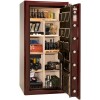 Внешняя отделка:Декоративное покрытие Высота ружей:1375мм Покрытие: Бордовый зеркальный автомобильный металлик. Универсальный сейф, может использоваться как в качестве оружейного сейфа, так и в качестве личного сейфа. Производство Liberty Safe and Security Products, Inc (США, штат Юта). Сейфы Liberty сертифицированы на взломостойкость и огнестойкость в США. Полностью удовлетворяют требованиям МВД. Великолепный дизайн! При изготовлении покрытий для этих сейфов используется специальный декоративный автомобильный металлик, такие же покрытия используются при производстве американских автомобилей премиум класса. Сейфы изготавливаются непосредственно в США. Штурвал сейфа имеет покрытие золотом 24 карата. Замок Сейф оборудован высокосекретным электронным кодовым замком Sargent & Greenleaf (США). Этот замок вы можете по вашему желанию эксплуатировать как в режиме одного кода, так и в режимах используя от 2-х до 9-и кодов. Можно использовать иерархическую систему кодов: мастер-код – код руководителя – пользовательские коды. Инновационная защита замка – закалённой пластиной с вращающимися шариками. Шарики вращаются если в них упирается сверло. New! Кодовая панель замка теперь имеет удобную светодиодную подсветку. Защита Усиленный корпус. Дверь усиленная коробчатой конструкции. Дополнительное усиление двери внутренней стальной плитой. Дверь оборудована мощной многосторонней ригельной запирающей системой, 18 активных ригелей диаметром 38мм. Специальные пластины внутри двери на рейках с ригелями для усиления защиты при попытке вскрытия монтировкой, рычагом и т.п. Лучший в своём классе поворотный запирающий механизм GX-480 MONSTER MECH с усиленной защитой. Увеличенный выход ригелей по сравнению с традиционными запирающими механизмами. Тип запирающего механизма - с зубчатой передачей и со смещенным центром. Этот запирающий механизм имеет лучшую защиту от бокового выбивания ригелей (по сравнению с DX-90 Monster Mech) и большую защиту от высверливания и пробивания по сравнению с другими запирающими механизмами. Инновационный привод поворотного запирающего механизма «SURETIGHT» с муфтой скольжения для защиты замка при приложении крутящего мышечного усилия при попытке взлома. Устойчивость к взлому сейфа не менее 30Ес. Система внутренних и внешних Fail-Safe™ relocker для блокировки замка или/и запирающего механизма при механических и термических воздействиях на замок. Security Level (взломостойкость по шкале Liberty Safe) – 30. Fire Rating 1200°F (огнестойкость при температуре в испытательной печи 649°C, заданный предел огнестойкости 177°C) – 2,5H. BTU Heat Rating (огнестойкость в Британских единицах тепловой мощности) – 131,000 BTUs. Внутреннее устройство Внутри сейфа ложементы и полки, съёмные с регулируемой высотой установки. Внутренняя поверхность корпуса, а также внутренние элементы имеют мягкую отделку. Сейф имеет удобный выдвижной ящик для хранения драгоценностей. Внутренняя поверхность двери сейфа имеет держатели для пистолетов, карманы, держатели для ножей и т.п., удобные закрывающиеся сумки. Так же имеется специальный закрывающийся пакет COOL POCKET™ для хранения особо важных документов. Он изготовлен из специальных материалов и обеспечивает дополнительную тепловую защиту. Сейф имеет электрическую светодиодную подсветку с датчиком движения. Подсветка включается автоматически при открывании двери сейфа. Сейф