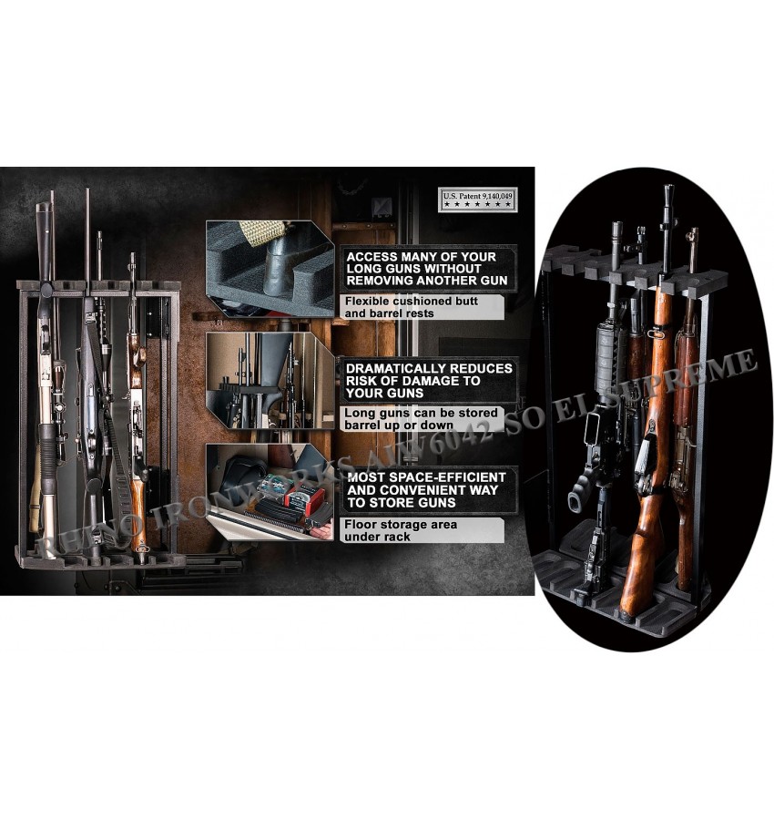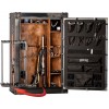 ОписаниеСовременный американский сейф изготовленный в старинном дизайне. Эти сейфы хорошо сочетаются как с современными интерьерами жилых помещений и офисов, а так же с такими интерьерами, как лофт, индастриал, винтаж, кантри и т.д. Производство Rhino Safe (США). Сейфы Rhino сертифицированы на взломостойкость и огнестойкость в США. Сейфы этой серии соответствуют или превосходят требования стандарта Департамента Юстиции штата Калифорния, предъявляемые к оружейным сейфам. Полностью удовлетворяют требованиям МВД к хранению оружия. Сейфы изготавливаются непосредственно в США. Замок Сейф оборудован высокосекретным электронным кодовым замком Sargent & Greenleaf (США). Защита замка - запатентованной бронепластиной RhinoPlate™ из карбида вольфрама. Имеется система relocker для блокировки замка или/и запирающего механизма при несанкционированных воздействиях на замок. New! Кодовая панель замка теперь имеет удобную светодиодную подсветку. Защита Усиленный корпус. Дополнительное усиление угловых граней корпуса специальными приварными накладками. Дверь усиленная коробчатой конструкции. Дополнительное усиление двери стальной пластиной толщиной 4,8 мм. Крупные заклёпки на двери и на корпусе имеют не только декоративную, но и дополнительную защитную функцию. Дверь сейфа оборудована мощной четырёхсторонней запирающей системой типа F-4 (запатентована) с увеличенной защитой от сверления и ударных воздействий. Тринадцать ригелей (из них 8 активных) диаметром 25мм. Увеличенный выход ригелей по сравнению с традиционными запирающими механизмами. Межстеночное пространство сейфа имеет многослойный огнестойкий наполнитель. Fire Rating 1400°F (огнестойкость при температуре в испытательной печи 760°C, заданный предел огнестойкости 177°C) – 1,25H. Для дополнительной защиты от проникновения при пожаре раскалённых газов и дыма внутрь сейфа – предусмотрен уплотнительный контур между дверью и корпусом сейфа. Эти уплотнительные прокладки выполнены из специального термостойкого материала и расширяются при пожаре, обеспечивая дополнительную герметичность. Внутреннее устройство Внутри сейфа ложементы и полки, съёмные с регулируемой высотой установки. Шаг перестановки 13мм. Так же в сейфе имеется удобный выдвижной лафет, обеспечивающий комфортный доступ к оружию. На лафет ружья можно устанавливать не только прикладом вниз, но и прикладом вверх. Пространство под лафетом можно использовать для хранения коробок с патронами и т.п. Внутренняя поверхность корпуса, а также внутренние элементы имеют мягкую отделку. Для внутренней отделки используется современная экозамша с эффектом потёртой буйволиной кожи. Внутренняя поверхность двери сейфа имеет держатели для пистолетов, карманы, держатели для ножей и т.п., удобные закрывающиеся сумки. В сейфе ружья можно хранить как по одну сторону от перегородки, так и по обе стороны от перегородки. Установка Конструкцией сейфа предусмотрена возможность его крепления к полу. Дополнительная информация Дизайн этих современных американских сейфов выполнен в стиле сейфов второй половины 19 века. Потёртости покрытия и внутренней отделки не являются дефектом или браком, а являются элементами дизайна сейфов Rhino Ironworks®. Дизайн сейфов запатентован в США. Дверь сейфа открывается полностью на 180°, что обеспечивает более удобный доступ к хранимым в се