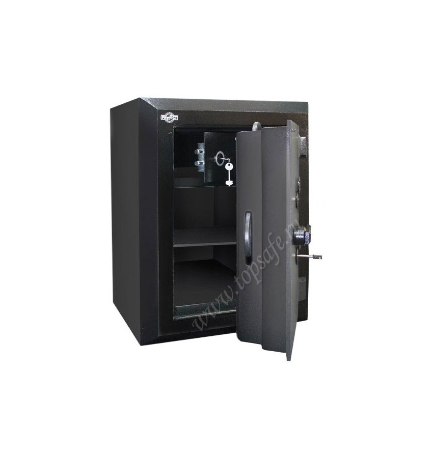 Оснащен полкой и трейзером, позволяющими выгодно использовать внутреннее пространство сейфа.