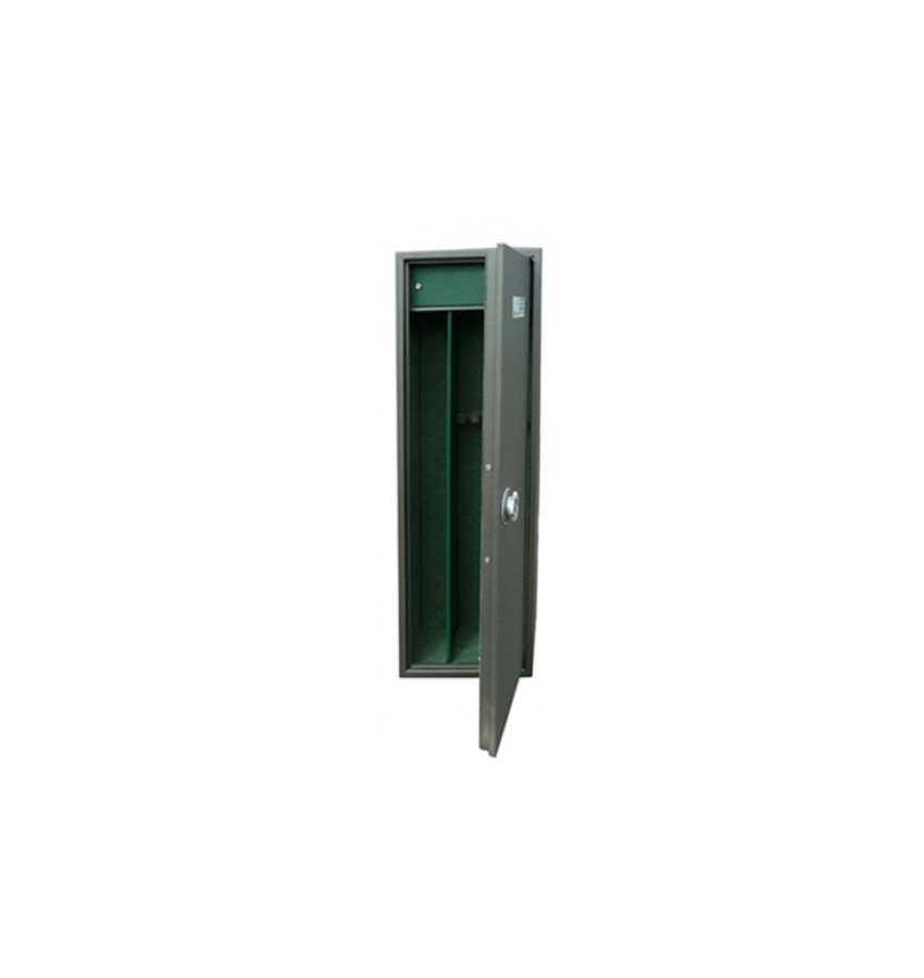ОписаниеСейф предназначен для хранения огнестрельного,травматического оружия и боеприпасов (патронов, пороха). В верхней части сейфа расположен трейзер (внутреннее отделение, запирающееся на ключ), позволяющий хранить различные аксессуары. Сейф снабжён ложементами для 5 ружей, 3-ми съёмными полками , максимальная высота хранимых стволов 1300 мм. Основные параметры сейфа: