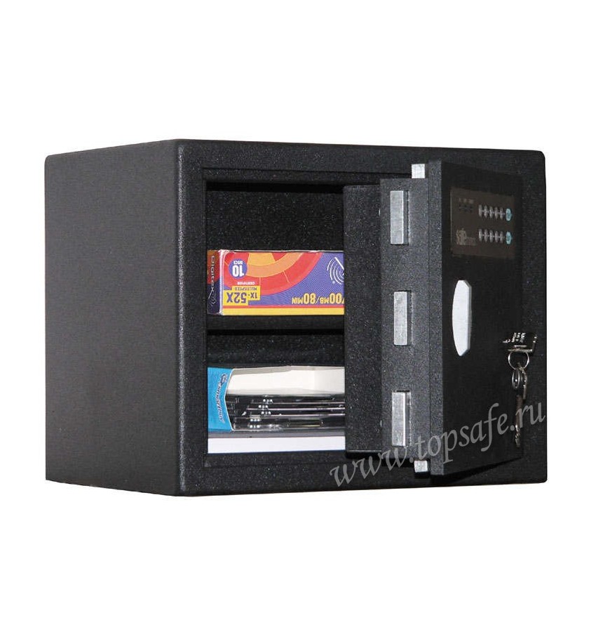 Область замка сейфов защищена двумя пластинами из марганцовистой стали, защищающими замок сейфа от высверливания.