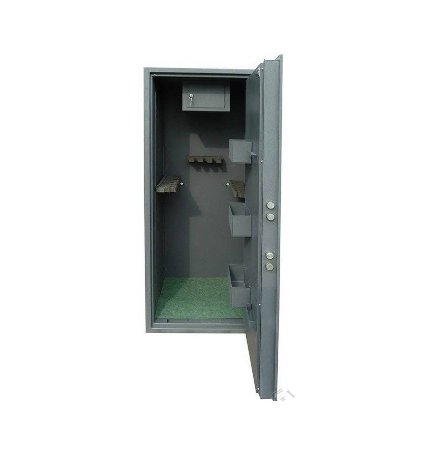 ОписаниеСейф предназначен для хранения нарезного и гладкоствольного оружия до 17 стволов. Оружие крепится при помощи специальных регулируемых по высоте сейфа ложементов. В верхней части сейфа имеется съемный трейзер. Конструкция корпуса сейфа состоит из двух частей: внешний корпус из металлического листа толщиной 3 мм и внутренний из металлического листа толщиной 2,5 мм. Дверная панель имеет толщину 10 мм, не считая специальной пластины от высверливания замков, изготовленной из высоколегированной стали , а также внутренней крышки двери. Сейф оборудован трехсторонней системой запирания ригелей. Места захода ригелей усилены стойкими к механическому воздействию пластинами. Размеры сейфа (ВхШхГл) 1500х600х600. ДоставкаСтоимость доставки по Москве в пределах МКАД: при заказе от 20 000 рублей бесплатно, менее 20000 руб - 1200 рублей Доставка возможна на 16.12.2025 или на 17.12.2025 Доставка по РФ и СНГ: по тарифам транспортных компаний Стоимость разгрузки: 3600 руб СамовывозСамовывоз: со склада, после после подтверждения заказа ОплатаОплата: наличными при получении товара, безналичный расчет ( 100% предоплата) Сейф Safetronics TSS-150MM/K17 |