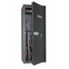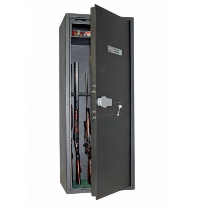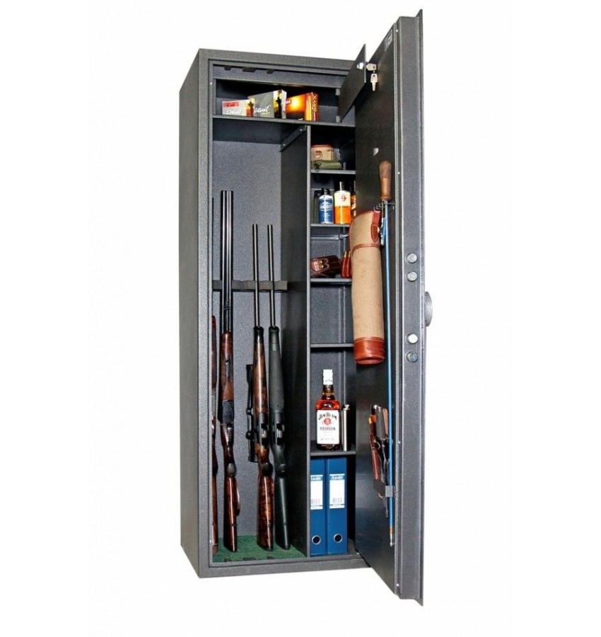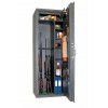 ОписаниеЭто вместительный взломостойкий сейф для хранения гладкоствольного и нарезного оружия вместе с ценностями и документами. В отличие от большинства оружейных шкафов, серия TSS изготавливается в полном соответствии с технологией 1 класса, благодаря чему вам обеспечена защита не только от доступа к оружию нежелательных лиц, но и от взломщиков-профессионалов. Первый уровень устойчивости к взлому подтверждён европейскими стандартами: EuroVDS (Германия) и CSN-9160010 (Чехия), а также ГОСТ Р 50862-2005. Модель целиком отвечает требованиям МВД РФ к хранению огнестрельного оружия (заключение НИЦ «Охрана» МВД РФ) и гарантирует вам безопасное содержание не менее пяти стволов длиной до 1,4 метра, холодного оружия и боеприпасов, а также умеренного количества денег и ценных вещей. Сейф снабжён качественным электронным замком производства SAFEtronics (Словакия) и зависимым ключевым замком. Чтобы предотвратить высверливание, в область замка встроены твердосплавные пластины из марганцовистой стали. Корпус модели 160EM/K5 состоит из двух стальных листов по 3 мм и находящегося между ними десятимиллиметрового слоя специального материала SMREKOLIT. Дверь сейфа усилена пятимиллиметровой стальной пластиной; её общая толщина равна 80 мм. Для запирания применяется трёхсторонний ригельный механизм. В верхней части сейфа имеется трейзер – снабжённое ключом отделение, подходящее для патронов и ценностей некрупных размеров. Также в комплект входит пять съёмных полок, позволяющих оптимально распланировать внутреннее пространство сейфа. В целях повышения надёжности существует возможность анкерного крепления модели к полу и стенам. Корпус обработан защитным покрытием порошкового типа, придающим вашему сейфу благородный тёмно-серый цвет.