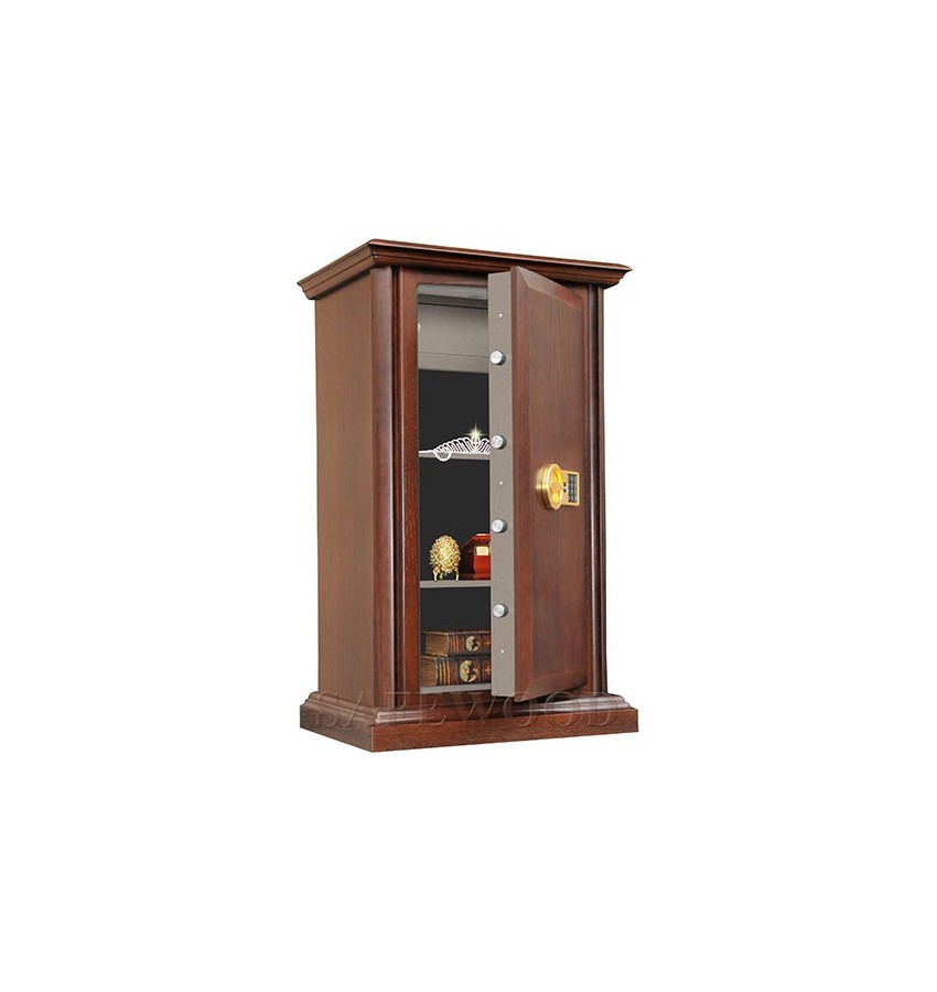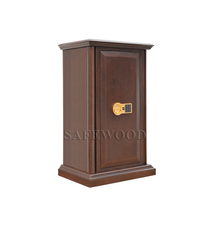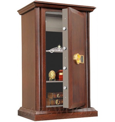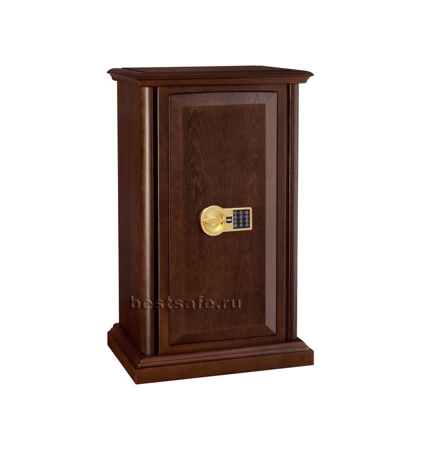 Элитный сейф с отделкой натуральным дубом. Сейф сертифицирован на устойчивость к взлому – 1 класс. Умеренная огнестойкость – приблизительно 20Б. Металлические детали сейфа имеют гигиенически-безопасное, коррозионно-стойкое полимерно-порошковое покрытие на основе материалов производства ЕС. Замок Сейф оборудован электронным кодовым замком PS-300 либо высокосекретным электронным кодовым замком Mauer (Германия). Уточняйте при покупке. Такие замки Вы можете по Вашему выбору эксплуатировать в режиме одного пользовательского кода, либо в режиме двух кодов (мастер-код и рабочий код). Вы можете выбрать кодовую панель электронного замка – Хром либо Gold. Варианты кодовых панелей представлены на дополнительном фото. Стоимость сейфа и гарантия зависит от типа замка и кодовой панели. Цена приведена для случая поставки сейфа с замком PS-300 с кодовой панелью Хром. При поставке с замком PS-300 с кодовой панелью Gold доплата 16300 рублей. При поставке с замком Mauer (Германия) с кодовой панелью Хром доплата 10900 рублей. При поставке с замком Mauer (Германия) с кодовой панелью Gold доплата 22300 рублей. Кодовые панели Gold имеют покрытие золотом 24 карата. На кодовую панель Mauer Gold имеется европейский сертификат. При поставке сейфа с электронным кодовым замком замком PS-300 ( с любой кодовой панелью) - гарантия на сейф – 5 лет, гарантия на замок составляет 2 года. При поставке сейфа с электронным кодовым замком Mauer (Германия) ( с любой кодовой панелью) гарантия – 5 лет, как на замок, так и на сейф. Защита Сейф имеет усиленную коробчатую дверь, передний лист двери – сталь 10мм. Петли – внутренние. Корпус имеет двойные стальные стенки, межстеночный наполнитель – бетон. Имеется защита замка от высверливания твёрдосплавной пластиной. Мощная запирающая система с запиранием по всем сторонам. Вращающиеся ригели диаметром 25мм. Внутреннее устройство Внутри сейфа запираемое кассовое отделение и съёмная полка с регулируемой высотой установки. Возможна комплектация дополнительными полками. Установка Предусмотрена возможность крепления сейфа к полу. Модификации Имеются различные варианты цвета деревянной отделки, а также возможность изготовления по образцу Вашей мебели. New! Для всех моделей сейфов SAFEWOOD теперь возможен новый дополнительный вариант наружной отделки: окрашенное дерево с патинированием. Возможны различные цвета окраски и патинирования. Некоторые примеры – на дополнительном фото. Возможно так же изготовление по образцу Вашей мебели. Возможна поставка любых сейфов Safewood в исполнении NP. Такие сейфы имеют меньшие наружные габариты при сохранении тех же внутренних габаритов.